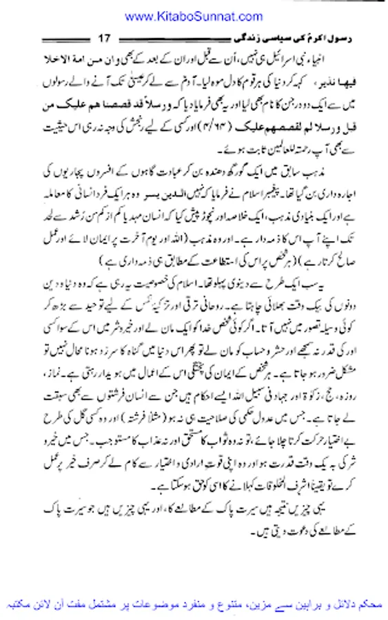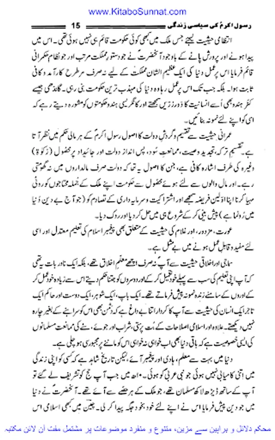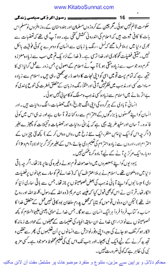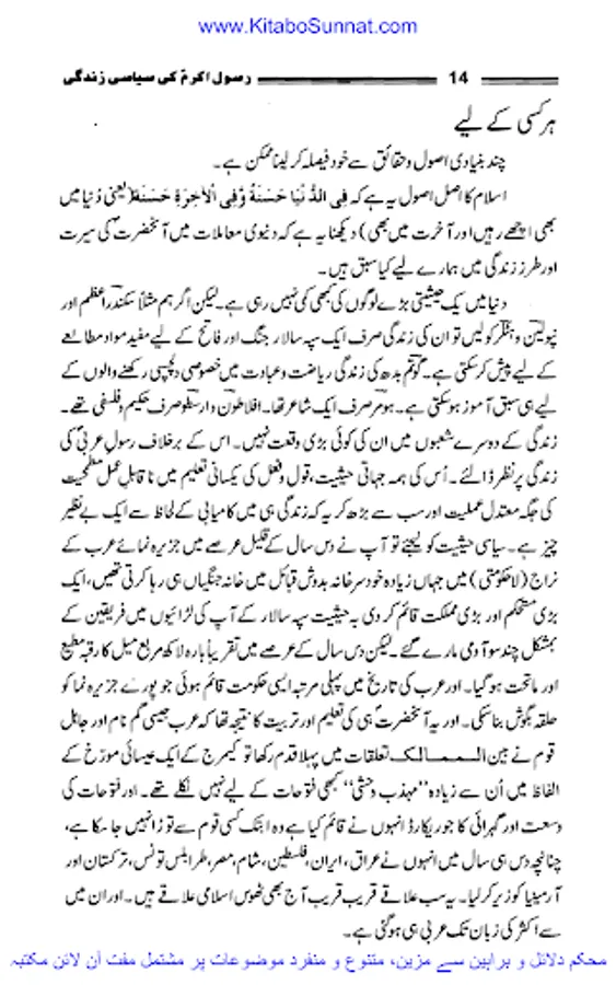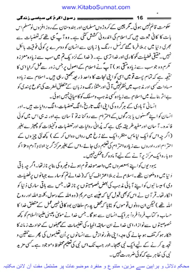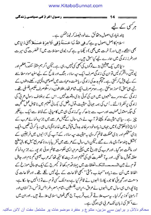 اللہ کے پاک نبی کریم حضرت محمد مصطفی احمد مجتبیؐ شب اسریٰ کے مہمان تمام دنیا کے انسانوں اور انبیاء کرام علیھم السلام کے سردار مکمل ضابطہ حیات لے کر اس جہان رنگ و بو میں تشریف لائے۔ سرکار دوجہاںﷺ نے انفرادی و اجتماعی زندگی کا مکمل نمونہ بن کر دکھایا۔ آپؐ کی اپنی مبارک حیات کے پہلے سانس سے لے کر آخری سانس تک کے وہ تمام نشیب و فراز ایک ہی سیرت میں یکجا ،مکمل اور قابل اتباع ہیں اور اللہ کا یہ احسان اعظم ہے کہ اس نے اپنے بندوں کی ہدایت کے لئے حضرت محمد ؐ کو مبعوث فرمایا۔ جب آقائے نامدار ؐکو مبعوث کیا گیا تو اس وقت دنیا تاریکی، جہالت، ابتری و ذلت کے انتہائی پر آشوب دور سے گز رہی تھی۔ یونانی فلسفہ اپنی نا پائیدار اقدار کا ماتم کر رہا تھا، رومی سلطنت روبہ زوال تھی، ایران اور چین اپنی اپنی ثقافت و تہذیب کو خانہ جنگی کے ہاتھوں رسوا ہوتا دیکھ رہے تھے۔ ہندوستان میں آریہ قبائل اور گوتم بدھ کی تحریک آخری ہچکیاں لے رہی تھی۔ ترکستان اور حبشہ میں بھی ساری دنیا کی طرح اخلاقی پستی کا دور دورہ تھا اور عرب کی حالت زار تو اس سے بھی دگرگوں تھی ۔سیاسی تہذیب و تمدن کا تو شعور ہی نہ تھا عرب وحدت مرکزیت سے آشنا نہیں تھے، وہاں ہمیشہ لا قانونیت ،باہمی جنگ و جدل کا دور دورہ رہا۔ اتحاد ،تنظیم ،قومیت کا شعور حکم و اطاعت وغیرہ جن پر اجتماعی اور سیاسی زندگی کی راہیں استوار ہوتی ہیں ان کے ہاں کہیں بھی نہ پائی جاتی تھیں۔ قبائل بھی اپنے اندرونی خلفشار کے ہاتھوں تہذیب و تمدن سے نا آشنا تھے۔ سیاسی وحدت یا بیرونی تہذیبوں سے آشنائی و رابطہ دور کی بات تھی۔ نبی پاک ؐ کی الہامی تعلیمات سے عرب ایک رشتہ وحدت میں پرو دئیے گئے اور وہ قوم جو باہمی جنگ و جدل ،ظلم و زیادتی کے علاوہ کسی تہذیب سے آشنا نہ تھی جہاں بانی کے مرتبے پر فائز کر دی گئی یہ سب اس بناء پر تھا کہ اسلام نے دنیاوی بادشاہت کے برعکس حاکمیت اقتدار اعلیٰ کا ایک نیا تصور پیش کیا جس کی بنیاد خدائے لم یزل کی حاکمیت اور جمہور کی خلافت تھی۔ زیر تبصرہ کتاب ’’رسول اللہﷺ کی سیاسی زندگی‘‘ڈاکٹر محمدحمیداللہ کی تصنیف ہے جس میں انہوں نے رسولﷺ کی سیرت طیبہ کونہایت ہی احسن انداز سے بیانن کیا ہے۔ اللہ رب العزت ان کو اس کار خیر پر اجرے عظیم سے بہرا مند فرمائے۔ آمین(شعیب خان).