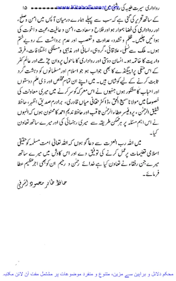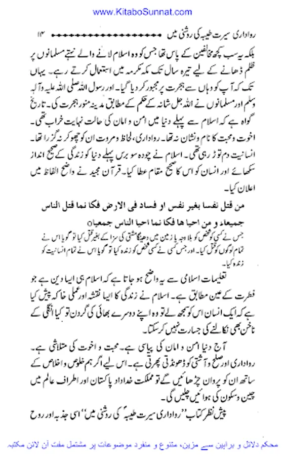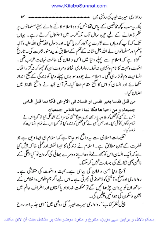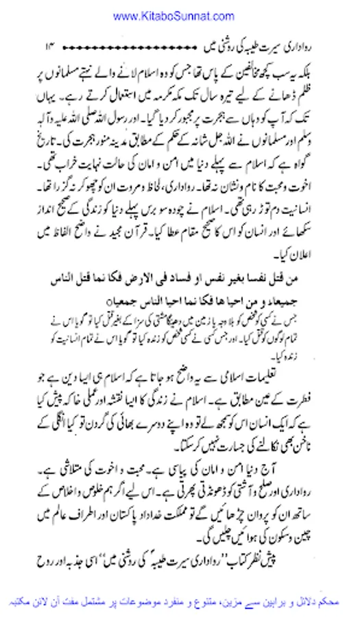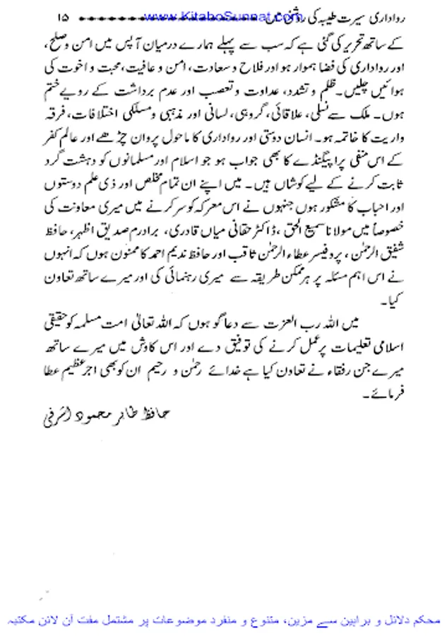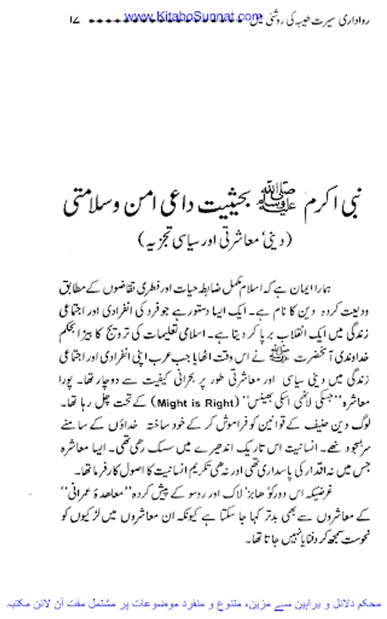 اللہ کے پاک نبی کریم حضرت محمد مصطفی احمد مجتبیؐ شب اسریٰ کے مہمان تمام دنیا کے انسانوں اور انبیاء کرام علیھم السلام کے سردار مکمل ضابطہ حیات لے کر اس جہان رنگ و بو میں تشریف لائے۔ سرکار دوجہاںﷺ نے انفرادی و اجتماعی زندگی کا مکمل نمونہ بن کر دکھایا۔ آپؐ کی اپنی مبارک حیات کے پہلے سانس سے لے کر آخری سانس تک کے وہ تمام نشیب و فراز ایک ہی سیرت میں یکجا ،مکمل اور قابل اتباع ہیں اور اللہ کا یہ احسان اعظم ہے کہ اس نے اپنے بندوں کی ہدایت کے لئے حضرت محمد ؐ کو مبعوث فرمایا۔ جب آقائے نامدار ؐکو مبعوث کیا گیا تو اس وقت دنیا تاریکی، جہالت، ابتری و ذلت کے انتہائی پر آشوب دور سے گز رہی تھی۔ یونانی فلسفہ اپنی نا پائیدار اقدار کا ماتم کر رہا تھا، رومی سلطنت روبہ زوال تھی، ایران اور چین اپنی اپنی ثقافت و تہذیب کو خانہ جنگی کے ہاتھوں رسوا ہوتا دیکھ رہے تھے۔ ہندوستان میں آریہ قبائل اور گوتم بدھ کی تحریک آخری ہچکیاں لے رہی تھی۔ ترکستان اور حبشہ میں بھی ساری دنیا کی طرح اخلاقی پستی کا دور دورہ تھا اور عرب کی حالت زار تو اس سے بھی دگرگوں تھی ۔سیاسی تہذیب و تمدن کا تو شعور ہی نہ تھا عرب وحدت مرکزیت سے آشنا نہیں تھے، وہاں ہمیشہ لا قانونیت، باہمی جنگ و جدل کا دور دورہ رہا۔ اتحاد ،تنظیم ،قومیت کا شعور حکم و اطاعت وغیرہ جن پر اجتماعی اور سیاسی زندگی کی راہیں استوار ہوتی ہیں ان کے ہاں کہیں بھی نہ پائی جاتی تھیں۔ قبائل بھی اپنے اندرونی خلفشار کے ہاتھوں تہذیب و تمدن سے نا آشنا تھے۔ سیاسی وحدت یا بیرونی تہذیبوں سے آشنائی و رابطہ دور کی بات تھی۔ نبی پاک ؐ کی الہامی تعلیمات سے عرب ایک رشتہ وحدت میں پرو دئیے گئے اور وہ قوم جو باہمی جنگ و جدل ،ظلم و زیادتی کے علاوہ کسی تہذیب سے آشنا نہ تھی جہاں بانی کے مرتبے پر فائز کر دی گئی یہ سب اس بناء پر تھا کہ اسلام نے دنیاوی بادشاہت کے برعکس حاکمیت اقتدار اعلیٰ کا ایک نیا تصور پیش کیا جس کی بنیاد خدائے لم یزل کی حاکمیت اور جمہور کی خلافت تھی۔ زیر تبصرہ کتاب’’رواداری سیرت طیبہ کی روشنی میں‘‘فاضل مصنف حافظ محمد طاہر محمود اشرفی کی تصنیف کردا ہے جس میں انہوں نے رسولﷺ کی سیرت طیبہ کواپنی اس کتاب میں نہایت ہی احسن انداز سے بیان ن کیا ہے۔ اللہ رب العزت ان کو اس کار خیر پر اجرے عظیم سے بہرا مند فرمائے۔ آمین(شعیب خان).