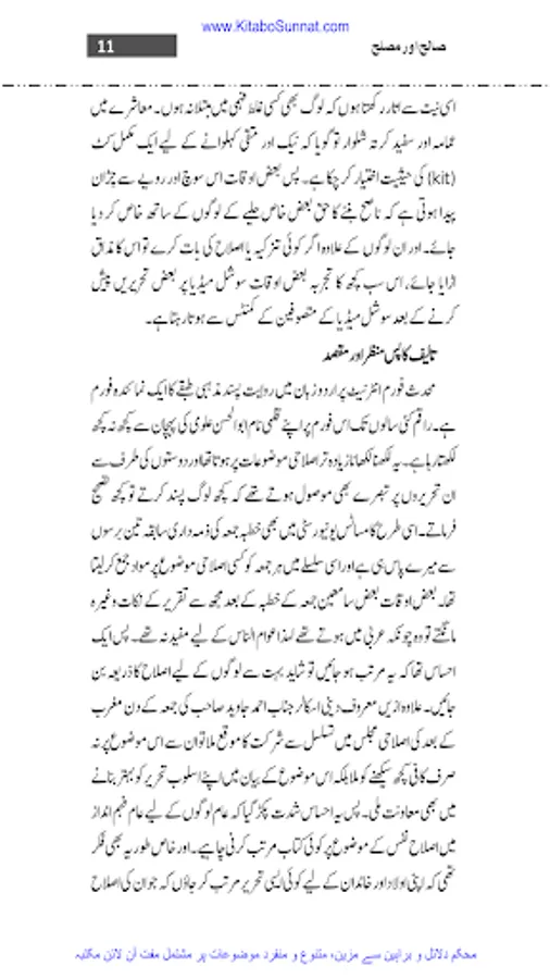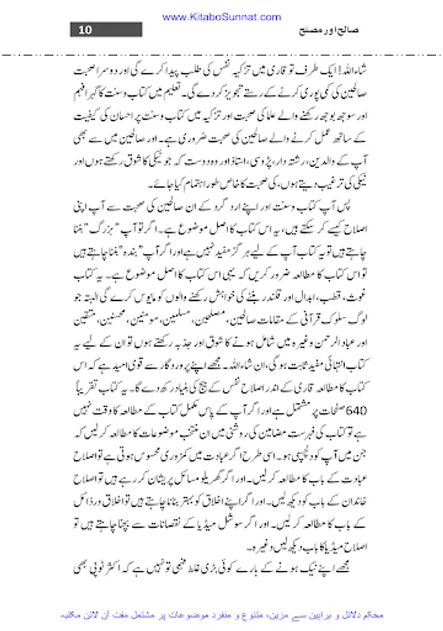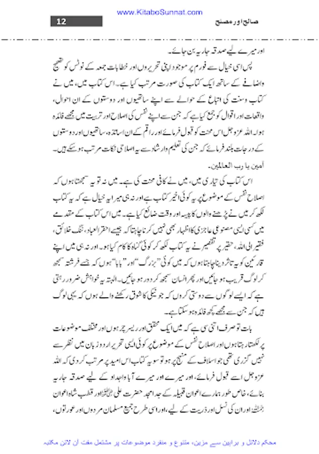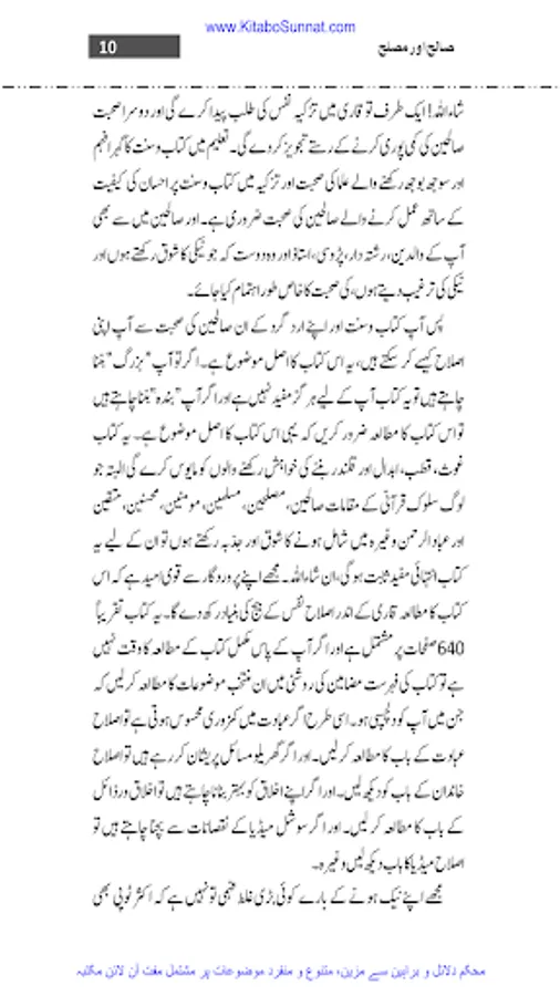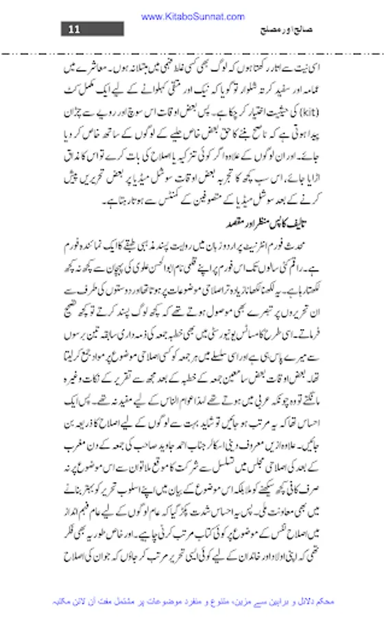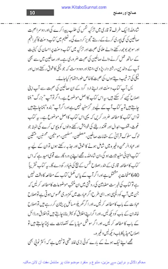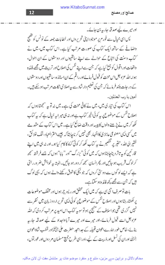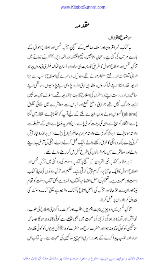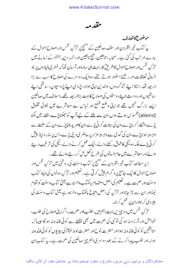 زیر تبصرہ کتاب دراصل خیر القرون کے منہج پر کتاب وسنت کی روشنی میں تزکیہ نفس اور اصلاح احوال کا ایک جامع پروگرام پیش کرتی ہے۔ تعلیم اور تزکیہ دونوں کی بنیاد کتاب وسنت اور صحبت ہے۔ تعلیم کی اصل اعتصام بالکتاب والسنۃ ہے تو تزکیہ کی اصل اتباع بالکتاب والسنۃ ہے۔ ترکیہ نفس میں دو چیزیں بہت اہم ہیں، طلب اور صحبت۔ اگر اپنی اصلاح کی طلب، خواہش اور آرزو نہ ہو گی تو نبی کی صحبت میں بھی بیٹھنے سے کوئی فائدہ نہ ہو گا جیسا کہ منافقین کو کوئی فائدہ نہ ہوا۔ اور طلب پیدا کرنے کے بعد دوسری اہم چیز صالحین کی صحبت ہے۔ یہ کتاب ان شاء اللہ، ایک تو قاری میں تزکیہ نفس کی طلب پیدا کر دے گی اور دوسرا صحبت صالحین کی کمی پوری کرنے کے رستے تجویز کر دے گی۔ تعلیم میں کتاب وسنت کا گہرا فہم رکھنے والے علماء کی صحبت اور تزکیہ میں کتاب وسنت پر احسان کی کیفیت کےساتھ عمل کرنے والے صالحین کی صحبت ضروری ہے۔ اور صالحین میں سے بھی آپ کے والدین، رشتہ دار، پڑوسی، استاذ اور وہ دوست کہ جو نیکی کا شوق رکھتے ہوں اور نیکی کی ترغیب دیتے ہوں۔ پس آپ کتاب وسنت اور اپنے ارد گرد کے ان صالحین کی صحبت سے آپ اپنی اصلاح کیسے کر سکتے ہیں، یہ اس کتاب کا اصل موضوع ہے۔ اگر تو آپ ”بزرگ“ بننا چاہتے ہیں تو یہ کتاب آپ کے لیے ہر گز مفید نہیں ہے اور اگر آپ ”بندہ“ بننا چاہتے ہیں تو اس کتاب کا مطالعہ ضرور کریں کہ یہی اس کتاب کا اصل موضوع ہے۔ ِیہ کتاب غوث، قطب، ابدال اور قلندر بننے کی خواہش رکھنے والوں کو مایوس کرے گی البتہ جو لوگ سلوک قرآنی کے مقامات صالحین، مصلحین، مسلمین، مومنین، محسنین، متقین اور عباد الرحمن وغیرہ میں شامل ہونے کا شوق اور جذبہ رکھتے ہوں تو ان کے لیے یہ کتاب انتہائی مفید ثابت ہو گی، ان شاء اللہ۔ مجھے اپنے پرودگار سے قوی امید ہے کہ اس کتاب کا مطالعہ قاری کے اندر اصلاح نفس کے بیج کی بنیاد رکھ دے گا۔ کتاب تقریبا 500 صفحات پر مشتمل ہے اور اگر آپ کے پاس مکمل کتاب کے مطالعہ کا وقت نہیں ہے تو اس کتاب میں سے صرف اس کا آخری باب "تقوی کا لباس" پڑھ لیں، وہی اس کتاب کا کل خلاصہ ہے اور وہی سلوک قرآنی کا مبتدا بھی ہے اور منتہی بھی۔ (ا۔ع).