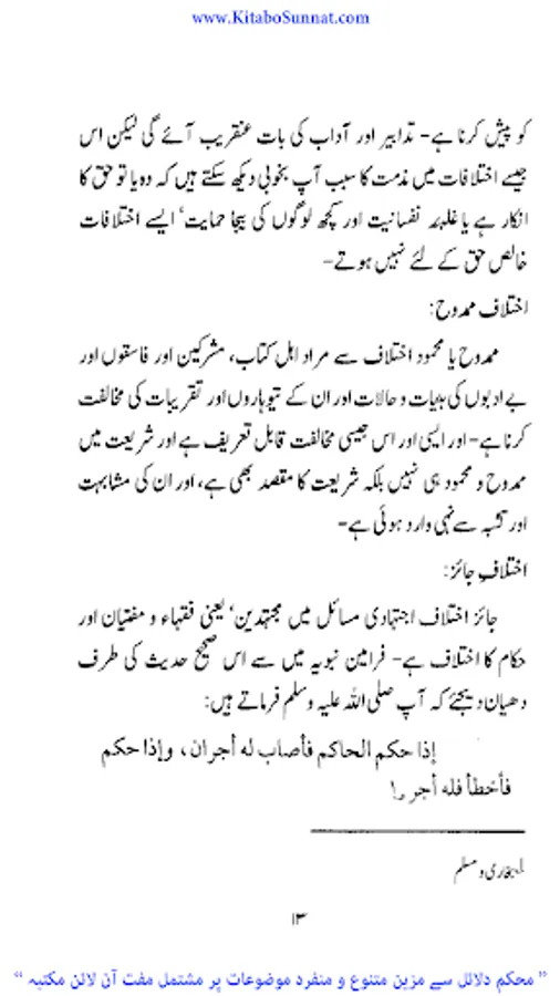 انسانی دنیا میں اختلاف کا پایا جانا ایک مسلمہ بات ہے ۔ اور یہ اللہ تعالیٰ کی اپنی مخلوق میں ایک سنت۔ چنانچہ لوگ اپنے رنگ وزبان اور طبیعت وادراکات اور معارف وعقول اور شکل وصورت میں باہم مختلف ہیں ۔امت محمدیہ آج جن چیزوں سے دوچار ہے ،اور آج سے پہلے بھی دو چار تھی ،ان میں اہم ترین چیز بظاہر اختلاف کا معا ملہ ہے جو امت کے افراد وجماعتوں، مذاہب وحکومتوں سب کے درمیان پایا جاتا رہا اور پایا جاتا ہے یہ اختلاف کبھی بڑھ کر ایسا ہوجاتا ہے کہ گروہ بندی تک پہنچ جاتا ہے اور یہ گروہ بندی باہمی دشمنی تک اور پھر جنگ وجدال تک ذریعہ بنتی ہے ۔اور یہ چیزیں اکثر دینی رنگ وعنوان بھی اختیار کر لیتی ہیں جس کے لیے نصوصِ وحی میں توجیہ وتاویل سے کام لیا جاتا ہے ، یا امت کے سلف صالح صحابہ وعلماء واصحاب مذاہب کے معاملات وحالات سے استناد حاصل کیا جاتا ہے ۔اور اختلاف اساسی طورپر دین کی رو سے کوئی منکر چیز نہیں ہے ،بلکہ وہ ایک مشروع چیز ہے جس پر کتاب وسنت کے بے شمار دلائل موجود ہیں۔علم الاختلاف سے مراد ان مسائل کا علم ہے جن میں اجتہاد جاری ہوتا ہے ۔ زیر تبصرہ کتاب’’ سلیقۂ اختلاف‘‘ ڈاکٹر صالح بن عبد اللہ بن حمید ( سابق امام وخطیب بیت اللہ الحرام ) کے جامعہ ام القریٰ ، مکۃ المکرمہ کے لیکچرز ہال میں اہل علم اور طلبا واساتذہ کے سامنے دئیے گئے محاضرات کی کتابی صورت ’’ ادب الخلاف‘‘ کا اردو ترجمہ ہے ۔ان محاضرات کو اہل علم کے ہاں بڑی پزیرائی حاصل ہوئی تو شیخ موصوف کی نظرثانی کےبعد اس کے ’’ ادب الخلاف ‘‘ کےنام سے مختلف مقامات سے متعدد عربی ایڈیشن شائع ہوئے۔بعد ازاں رابط عالم اسلامی نے اپنے ہفتہ وار ترجمان ’’العالم الاسلامی‘‘ میں اسے قسط وار شائع کیا ۔اس کتاب کی افادیت کے باعث اسے اردو داں طبقہ کے لیے اردو قالب میں ڈھال کر وزارت اسلامی امور سعودی عرب نےاسے کثیر تعدا د میں شائع کر کے تقسیم کیا ۔(م۔ا).
