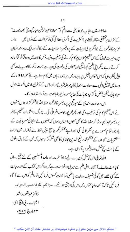 اس روئے ارض پر انسانی ہدایت کے لیے حق تعالیٰ نے جن برگزیدہ بندوں کو منتخب فرمایا ہم انہیں انبیاء ورسل کی مقدس اصطلاح سے یاد رکرتے ہیں اس کائنات کے انسانِ اول اور پیغمبرِاول ایک ہی شخصیت حضرت آدم کی صورت میں فریضۂ ہدایت کےلیے مبعوث ہوئے ۔ اور پھر یہ کاروانِ رسالت مختلف صدیوں اور مختلف علاقوں میں انسانی ہدایت کے فریضے ادا کرتے ہوئے پاکیزہ سیرتوں کی ایک کہکشاں ہمارے سامنے منور کردیتاہے ۔درخشندگی اور تابندگی کے اس ماحول میں ایک شخصیت خورشید جہاں تاب کی صورت میں زمانےاور زمین کی ظلمتوں کو مٹانے اورانسان کےلیے ہدایت کا آخری پیغام لے کر مبعوث ہوئی جسے محمد رسول اللہ ﷺ کہتے ہیں ۔ آج انسانیت کےپاس آسمانی ہدایت کا یہی ایک نمونہ باقی ہے۔ جسے قرآن مجید نےاسوۂ حسنہ قراردیا اور اس اسوۂ حسنہ کےحامل کی سیرت سراج منیر بن کر ظلمت کدۂ عالم میں روشنی پھیلارہی ہے ۔ رہبر انسانیت سیدنا محمد رسول اللہ ﷺ قیامت تک آنے والےانسانوں کےلیے’’اسوۂحسنہ‘‘ ہیں ۔ حضرت محمد ﷺ ہی اللہ تعالیٰ کے بعد ،وہ کامل ترین ہستی ہیں جن کی زندگی اپنے اندر عالمِ انسانیت کی مکمل رہنمائی کا پور سامان رکھتی ہے ۔ ۔ گزشتہ چودہ صدیوں میں اس ہادئ کامل ﷺ کی سیرت وصورت پر ہزاروں کتابیں اورلاکھوں مضامین لکھے جا چکے ہیں ۔اورکئی ادارے صرف سیرت نگاری پر کام کرنے کےلیےمعرض وجود میں آئے ۔اور پورے عالمِ اسلام میں سیرت النبی ﷺ کے مختلف گوشوں پر سالانہ کانفرنسوں اور سیمینار کا انعقاد بھی کیا جاتاہے جس میں مختلف اہل علم اپنے تحریری مقالات پیش کرتے ہیں۔ ہنوذ یہ سلسلہ جاری وساری ہے ۔ زیر تبصرہ کتاب ’’ سیرت رسول ﷺ قرآن کے آئینے میں ‘‘ مرکزی جمعیت اہل پاکستان کے مرکزی رہنما محترم جناب پرو فیسر ڈاکٹر عبد الغفور راشد ﷾ کی سیرت کے موضوع پر ایک اچھوتی تصنیف ہے ۔اس کتاب میں سیرت کے تمام اہم موضوعات کا احاطہ کیا گیا ہے ۔ کتاب کا آغاز بعثت رسول ﷺ سے قبل ادیان ومذہب کی صورت حال پر بہت مفید اور دلچسپ حقائق سے ہوتا ہے ۔ اس کے بعد کتب سماویہ میں رسول کریم ﷺ کے ظہور کی پیشن گوئیوں کوبیان کیاگیا ہے ۔جس سے آپ ﷺ کی صداقت کا ایک نیا اسلوب پیداہوتا ہے ۔امتیازات رسول ﷺ کے عنوان سے جو لوازمہ پیش کیا گیا ہے وہ ایمان افروز بھی ہے اور لائق مطالعہ بھی ۔تمام سیرت نگاروں کی طرح اس تصنیف لطیف میں بھی غزوات وسرایا کاباب موجود ہے ۔کتاب کےآخری ابواب میں یہود ونصاریٰ سے دوستی ،ازدواجی زندگی ، معجزات ،ہجرت مدینہ اور رسالت وبشریت کے حوالے سے بہت اہم گفتگو کی گئی ہے ۔ یہ کتاب سیرت نگاری کے پاکیزہ سفر میں ایک نقش محکم کا درجہ رکھتی ہے ۔اللہ تعالیٰ فاضل مصنف کی اس کاوش کو قبول فرمائے اور ہمیں اپنی زندگیوں کوسیرت کے قالب میں ڈھالنے کی توفیق عطافرمائے ۔ (آمین) (م۔ا).