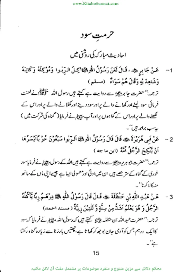 سود کو عربی زبان میں ”ربا“کہتے ہیں ،جس کا لغوی معنیٰ زیادہ ہونا ، پروان چڑھنا ، او ر بلندی کی طرف جانا ہے ۔ اور شرعی اصطلاح میں ربا (سود) کی تعریف یہ ہے کہ : ” کسی کو اس شرط کے ساتھ رقم ادھار دینا کہ واپسی کے وقت وہ کچھ رقم زیادہ لے گا “۔سرمایہ دارانہ نظام زندگی کے مختلف شعبوں میں جو بگاڑ پیدا کیا ہے اس کا سب سے بڑا سبب سود ہے ۔ ہماری معاشی زندگی میں سود کچھ اس طرح رچا بسا دیاگیا ہے کہ لوگ اس کو معاشی نظام کا ایک لازمی عنصر سجھنے لگے ہیں اور اس کےبغیر کسی معاشی سرگرمی کو ناممکن سمجھتے ہیں وجہ یہ ہے کہ اب وہ امت مسلمہ جس کو اللہ تعالیٰ نےاپنی کتاب میں سود مٹانے کے لیے مامور کیا تھا جس کو سودخوروں سےاعلان جنگ کرنے کا حکم دیا تھا۔ اب اپنی ہر معاشی اسکیم میں سود کوبنیاد بناکر سودخوری کےبڑے بڑے ادارے قائم کررکھے ہیں اور سودی نظام کو استحکام بخشا جار ہا ہے ۔جس کے نتیجے میں امت مسلمہ کو معاشی اور اقتصادی تباہ کاریوں کا سامنا بھی کرنا پڑھ رہا ہے ۔ سودخواہ کسی غریب ونادار سے لیاجائے یا کسی امیر اور سرمایہ دار سے ، یہ ایک ایسی لعنت ہے جس سے نہ صرف معاشی استحصال، مفت خوری ، حرص وطمع، خود غرضی ، شقاوت وسنگدلی، مفاد پرستی ، زر پرستی اور بخل جیسی اخلاقی قباحتیں جنم لیتی ہیں بلکہ معاشی اور اقتصادی تباہ کاریوں کا سامنا بھی کرنا پڑتا ہے، اس لیے دینِ اسلام اسے کسی صورت برداشت نہیں کرتا۔ شریعت ِاسلامیہ نے نہ صرف اسے قطعی حرام قرار دیاہے بلکہ اسے اللہ اور اس کے رسول کے ساتھ جنگ قرار دیاہے ۔ زیر تبصرہ کتابچہ ’’ سود حرمت، خباثتیں، اشکلات ‘‘تنظیم اسلامی پاکستان کے مرکزی شعبہ تعلیم وتربیت کے ناظم حافظ انجینیر نوید احمد کی کاوش ہے ۔اس کتابچہ میں فاضل مرتب نے وطن عزیز پاکستان میں انسداد سود کےمعاملہ میں کی جانے والی کوششو ں کی روداد مرتب کی ہے ۔ نیر اس کتابچہ میں حافظ عاکف سعید صاحب کا ایک مضمون بعنوان ’’ تنظیم اسلامی کی انسداد سود کی جدو جہد کی روداد ‘‘ بھی شامل اشاعت ہے ۔ اللہ تعالیٰ اس کومرتب کرنے والے احباب اور ناشرین کی اس کاوش کو قبول فرمائے اور ہماری معیشت کو سود جیسی لعنت سے محفوظ فرمائے (آمین) (م۔ا).