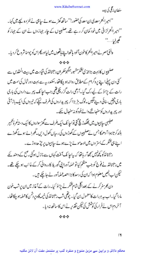 خلفائے راشدین اور حضرت عمر بن عبد العزیز کے بعد جن مسلمان حکمرانوں کی عظمت کردار نے آسمان کی رفعتوں کو چھو لیا ان میں ملک العادل سلطان نورالدین محمود زنگی کا نام نامی امتیازی حیثیت رکھتا ہے۔ اس کی عظمت کا اس سے بڑھ کر اور کیا ثبوت ہوگا کہ ہردور کے مورخ، دوست اور دوشمن سبھی نے اسکی شہرتِ عام اور بقائے دوام کے دربار میں نمایاں جگہ دی ہے۔ بعض مورخین نےخلفائے راشدین کےبعد تمام فرماں روایان اسلام میں اس کوسب سےبہتر قرار دیا ہے۔ نور الدین فروری 1118ء میں پیدا ہوا اور 1146ء سے 1174ء تک 28 سال حکومت کی۔ اس نے عیسائیوں سے بیت المقدس واپس لینے کے لیے پہلے ایک مضبوط حکومت قائم کرنے کی کوشش کی اور اس مقصد کو حاصل کرنے کے لیے گرد و نواح کی چھوٹی چھوٹی مسلمان حکومتوں کو ختم کرکے ان کو اپنی مملکت میں شامل کرلیا۔ مصر پر قبضہ کرنے کے بعد نورالدین نے بیت المقدس پر حملہ کرنے کی تیاریاں شروع کردیں۔ بیت المقدس کی مسجد عمر میں رکھنے کے لیے اس نے اعلیٰ درجے کا منبر تیار کروایا۔ اس کی خواہش تھی کہ فتح بیت المقدس کے بعد وہ اس منبر کو اپنے ہاتھوں سے رکھے گا لیکن اللہ تعالیٰ کو یہ منظور نہ تھا۔ نورالدین ابھی حملے کی تیاریاں ہی کررہا تھا کہ زنگی کو حشیشین نے زہر دیا۔ جس سے ان کے گلے میں سوزش پیدا هو گئی جو کہ ان کی موت کا باعث بنی 15 مئی 1174ء کو ان کا انتقال ہوگیا۔ انتقال کے وقت نورالدین کی عمر 58سال تھی۔ نور الدین زنگی کی وفات کے بعد جب ان کا کم سن بیٹا مفاد پرست امراء کے ہاتھ میں کھلونا بن گیا تو قدرت حق نے صلاح صلاح الدین ایوبی کو سلطان زنگی کے مشن کا وارث بنا کر کھڑا کردیا۔ عظمت اسلام کے مشن سے منحرف سلطان زنگی مرحوم کے بیٹے کے مقابلے میں خود اس کی ماں یعنی سلطان زنگی کی بیوہ نے جس طرح اندرونی محاذ پر مزاحمت کر کے دمشق کی سلطنت کے بگڑے ہوئے تشخص کو پھر سے بحال کردیا اسلامی تاریخ کا ایک اہم باب ہے۔ زیر تبصرہ کتاب ’’سلطان زنگی کی بیوہ‘‘ میں جناب ڈاکٹر اختر حسین عزمی نے ایک دلچسپ ناول کے انداز میں سلطان نور الدین زنگی کی وفات کےبعدان کی بیوہ کے مثالی تاریخی کردار کو پیش کیا ہے۔ (م۔ا).