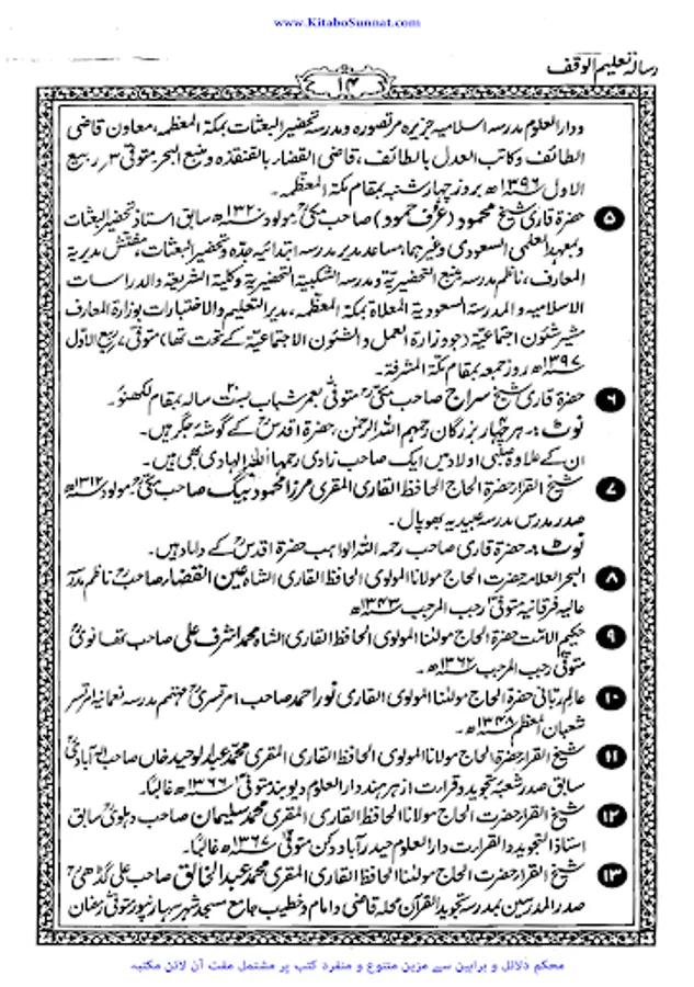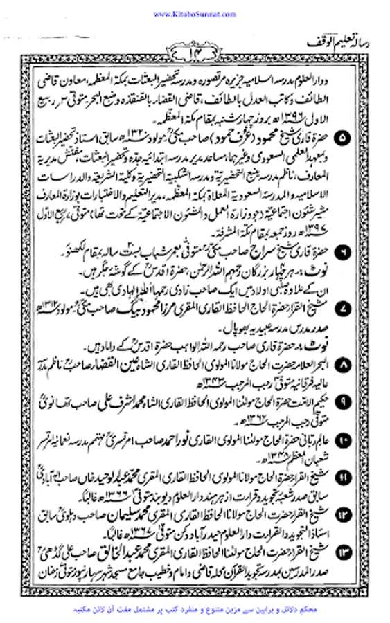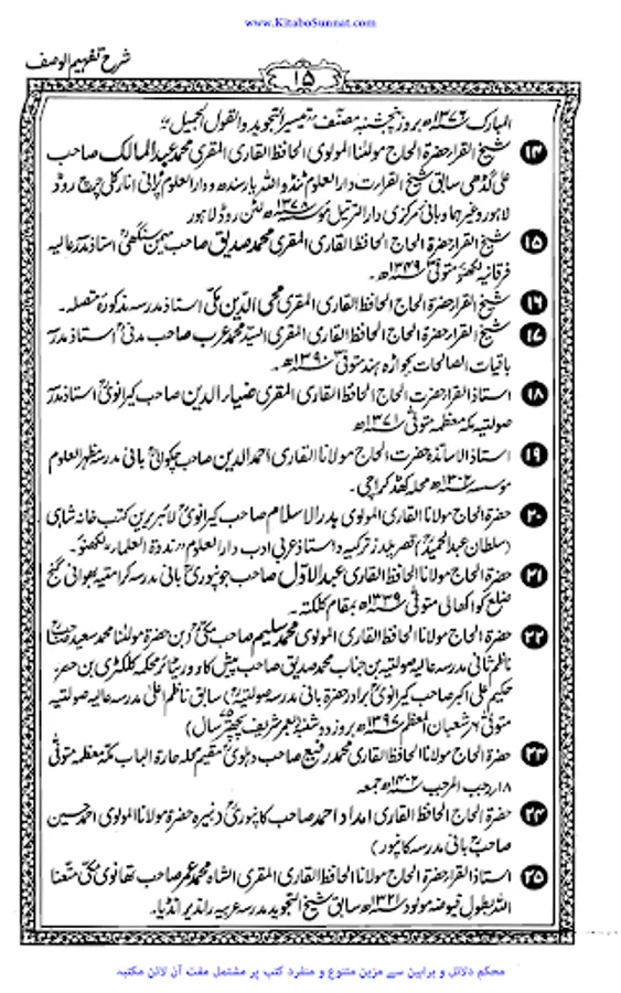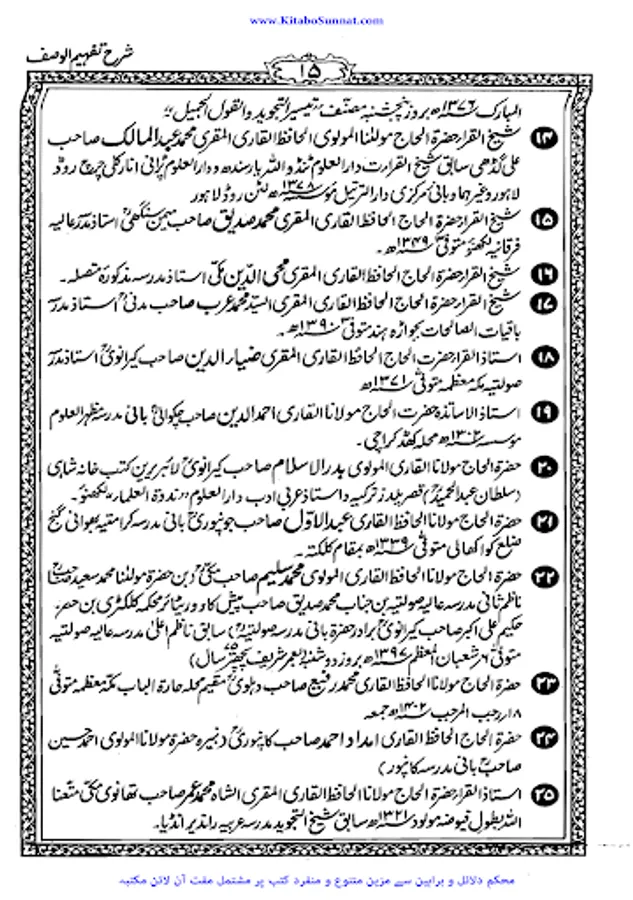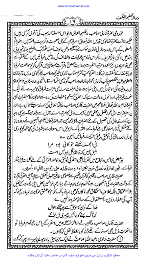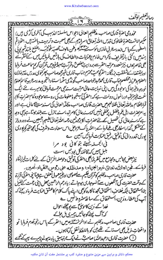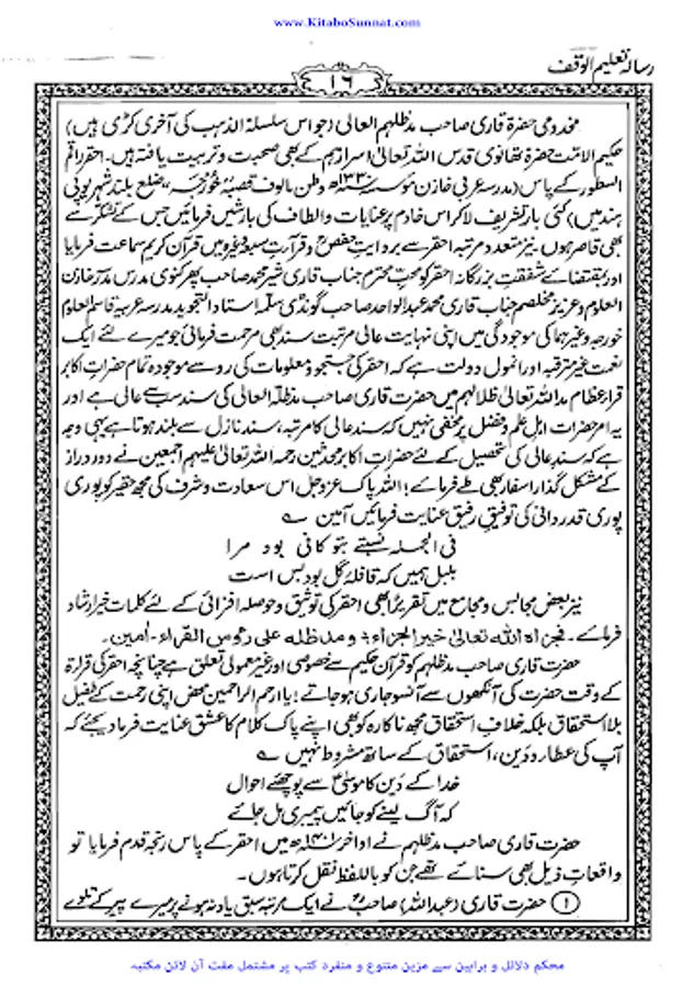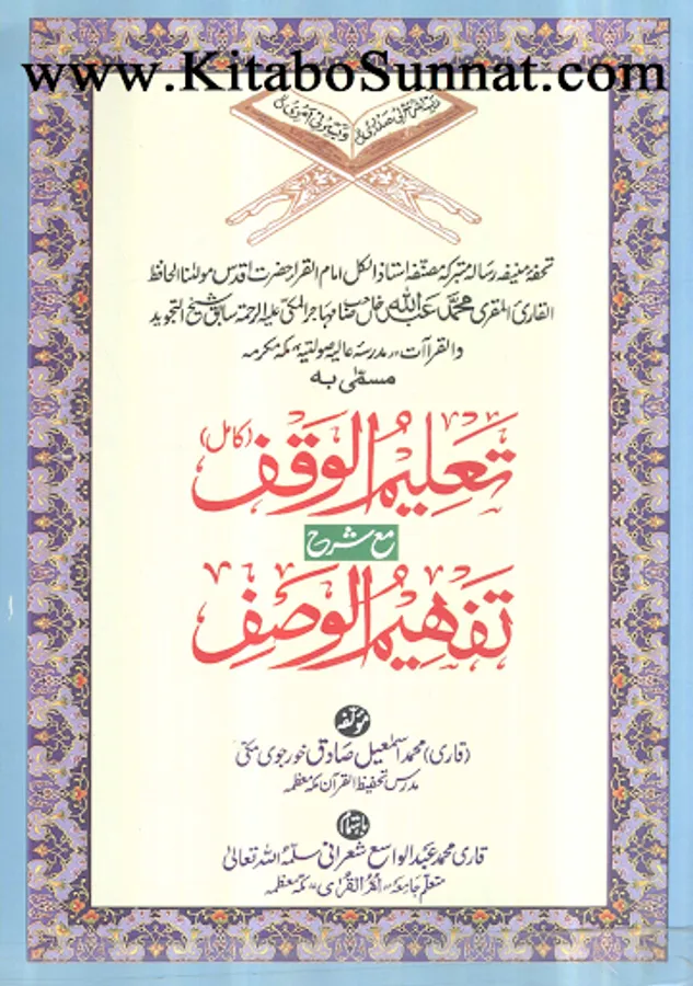 وقف کا لغوی معنی ٹھہرنا اور رُکنا ہے۔ جبکہ اہل فن قراء کرام کی اصطلاح میں وقف کے معنی ہیں کہ"کلمہ کے آخر پر اتنی دیر آواز کو منقطع کرنا جس میں بطور عادت سانس لیا جاسکے، اور قراء ت جاری رکھنے کا ارادہ بھی ہو، عام ہے کہ وقف کرنے کے بعد مابعد سے ابتداء کریں یا ماقبل سےاعادہ" (النشر:۱؍۲۴۰) معرفت وقف وابتداء کی اہمیت اور اس علم کی ضرورت کااحساس کرنے کے لئے اتنا ہی کافی ہے کہ جس طرح دلائل شرعیہ یعنی قرآن وحدیث اور اجماع اُمت سےقرآن مجید کا تجوید کے ساتھ پڑھنا واجب اور ضروری ہے، اسی طرح معرفت الوقف، یعنی قرآنی وقوف کو پہچاننا اور دورانِ تلاوت حسنِ وقف وابتداء کی رعایت رکھنا اور اس کا اہتمام کرنا بھی ضروری ہے اوراس میں کسی کااختلاف نہیں ۔اوروجہ اس کی یہ ہے کہ جس طرح تجوید کے ذریعہ حروف قرآن کی تصحیح ہوتی ہے اسی طرح معرفت الوقوف کے ذریعے معانی قرآن کی تفہیم ہوتی ہے۔ اللہ تعالیٰ نے قرآن مجید کو ترتیل کے ساتھ پڑھنے کا حکم دیا ہے :’’اورقرآن مجید کوترتیل کے ساتھ پڑھو ۔‘‘(المزمل:4) سیدنا علی سے ترتیل کا معنی پوچھا گیا توآپ نے فرمایا:’’الترتیل ہو تجوید الحروف ومعرفۃ الوقوف‘‘(الإتقان فی علوم القرآ ن:۱؍۸۵) اس تفسیر میں ترتیل کے دوجز بیان کیے گئے ہیں 1۔تجوید الحروف 2۔معرفۃ الوقوف ۔پس تجوید الحروف کی طرح معرفۃ الوقوف بھی ترتیل کا ایک جزء اور اس کا ایک حصہ ہے ۔ زیر تبصرہ کتاب" تعلیم الوقف (کامل) مع شرح تفھیم الوصف " محترم جناب قاری محمد اسماعیل صادق خورجوی مکی صاحب کی تصنیف ہے، جس میں انہوں علم وقف کی علمی وفنی مباحث کو ایک جگہ جمع فرمادیا ہے۔ اللہ تعالی ان کی اس خدمت کو اپنی بارگاہ میں قبول فرمائے اور ان کے میزان حسنات میں اضافہ فرمائے۔آمین(راسخ).