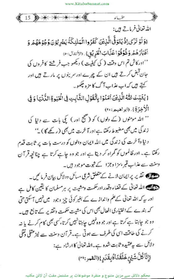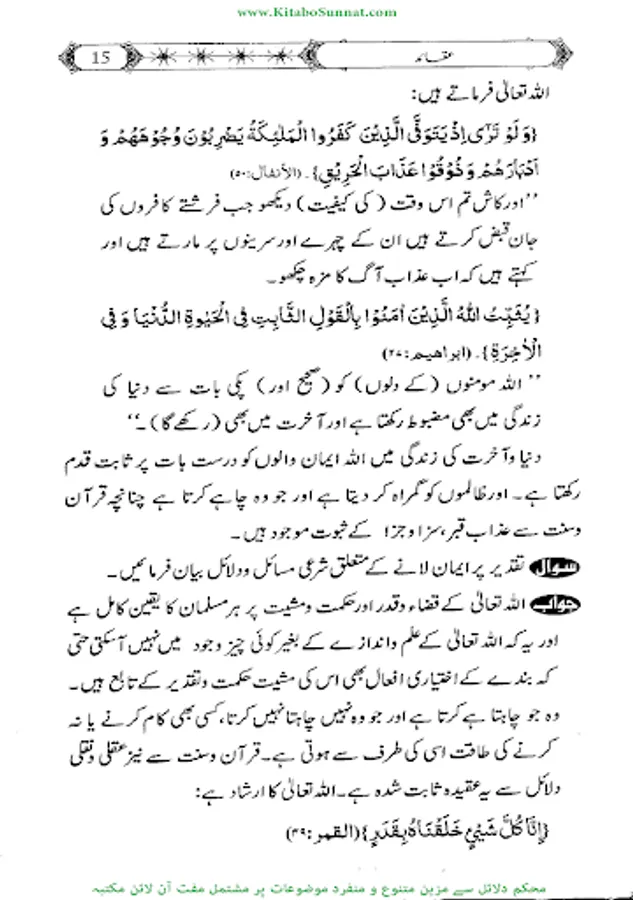 دین اسلام ایک کامل ضابطہ حیات ہے جس میں تمام افراد بشر کے حقوق وفرائض کو مکمل طور پر بیان کیاگیا ہے ۔لہذا اگر ہر شخص اپنی ذمے داریاں پوری کرے اوردوسروں کے حقوق ادا کرتا رہے تو مسلم معاشرہ امن وامان کا ایک مثالی گہوارہ بن سکتا ہےکیونکہ اس کی تعلیمات میں دینوی واخروی دونوں قسم کے فوائد موجود ہیں جو ایک کامیاب زندگی کی ضمانت ہیں ۔ زیر تبصرہ کتاب’’ تعلیم الاسلام ‘‘ مولانا محمد سعید کلیروی ﷾ کی تصنیف ہے ۔ فاضل مصنف نےاس کتاب میں انتہائی آسان پیرائے سوال وجواب کی صورت میں عوام الناس کے لیے عقائد، عبادات اورمعاملات سےمتعلق اسلامی تعلیمات کوبیان کیا ہے ۔ آخری باب میں سیرت النبی ﷺ کے متعلق ایک باب میں نبی اکرم ﷺ کےحالات ووقعات کے متعلق مفید معلومات جمع کردی ہیں ۔فاضل مصنف نے بھر پور کوشش سے تمام احکام ومسائل کو عام فہم انداز لکھا ہے تاکہ ہر مسلمان اس سے بہ آسانی استفادہ کرسکے ۔(م۔ا).