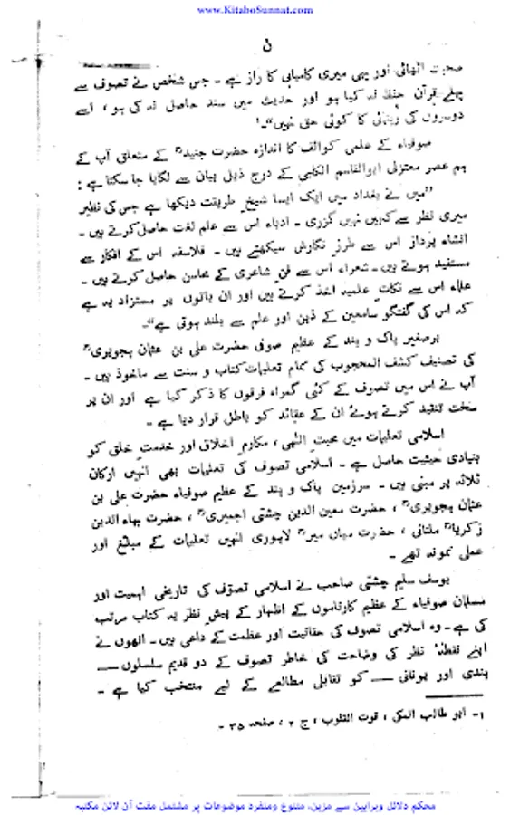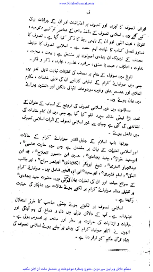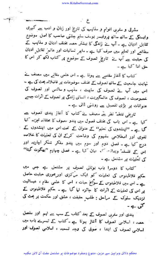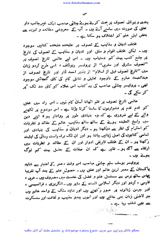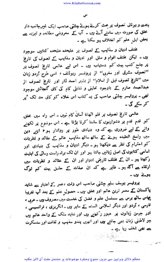 تصوف کا لفظ اس طریقۂ کار یا اسلوبِ عمل کے لیے اختیار کیا جاتا ہے جس پر کوئی صوفی (جمع: صوفیاء) عمل پیرا ہو۔ اسلام سے قربت رکھنے والے صوفی، لفظ تصوف کی تعریف یوں کرتے ہیں کہ ؛ تصوف کو قرآنی اصطلاح میں تزکیۂ نفس اور حدیث کی اصطلاح میں احسان کہتے ہیں۔ تصوف کی اس مذکوہ بالا تعریف بیان کرنے والے افراد تصوف کو قرآن و سنت کے عین مطابق قرار دیتے ہیں؛ اور ابتدائی ایام میں متعدد فقہی علماء کرام بھی اس ہی تصوف کی جانب مراد لیتے ہیں۔ پھر بعد میں تصوف میں ایسے افکار ظاہر ہونا شروع ہوئے کہ جن پر شریعت و فقہ پر قائم علماء نے نہ صرف یہ کہ ناپسندیدگی کا اظہار کیا بلکہ ان کو رد بھی کیا۔تصوف کا لفظ ، اسلامی ممالک (بطور خاص برصغیر ) میں روحانیت ، ترکِ دنیا داری اور اللہ سے قربت حاصل کرنے کے مفہوم میں جانا جاتا ہے اور مسلم علماء میں اس سے معترض اور متفق ، دونوں اقسام کے طبقات پائے جاتے ہیں؛ کچھ کے خیال میں تصوف شریعت اور قرآن سے انحراف کا نام ہے اور کچھ اسے شریعت کے مطابق قرار دیتے ہیں۔ اس لفظ تصوف کو متنازع کہا بھی جاسکتا ہے اور نہیں بھی؛ اس کی وجہ یہ ہے کہ جو اشخاص خود تصوف کے طریقۂ کار سے متفق ہیں وہ اس کو روحانی پاکیزگی حاصل کرنے کے لیئے قرآن و شریعت سے عین مطابق قرار دیتے ہیں اور جو اشخاص تصوف کی تکفیر کرتے وہ اس کو بدعت کہتے ہیں اور شریعت کے خلاف قرار دیتے ہیں یعنی ان دونوں (تصوف موافق و تصوف مخالف) افراد کے گروہوں کے نزدیک تصوف کوئی متنازع شے نہیں بلکہ ان کے نزدیک تو معاملہ صرف توقیر اور تکفیر کا ہے۔ دوسری جانب وہ افراد ، عالم یا محققین (مسلم اور غیرمسلم) کہ جو مسلمانوں میں موجود تمام فرقہ جات کا تقابلی جائزہ لیتے ہوئے تصوف کا مطالعہ کرتے ہیں تو ان کے نزدیک تصوف کا شعبہ مسلمانوں کے مابین ایک متنازع حیثیت رکھتا ہے۔تصوف کا یہ سلسلہ ہندی، یونانی اور اسلامی تصوف پر مشتمل ہے۔ زیر تبصرہ کتاب" تاریخ تصوف " محترم پروفیسر یوسف سلیم چشتی صاحب کی تصنیف ہے جس میں انہوں نے تصوف کی تینوں اقسام ہندی، یونانی اور اسلامی کی تاریخ جمع کر دی ہے۔قطع نظر اس بات کے کہ اب اس میں بے شمار ایسے عقائد ونظریات داخل ہو چکے ہیں جن کا اسلام کے ساتھ کوئی دور کا بھی تعلق نہیں ہے۔(راسخ).
