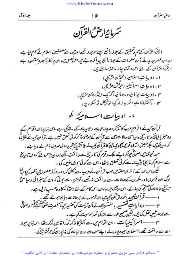 ارض قرآن سے مراد وہ سرزمیں مبارکہ ہے جس میں سید الانبیاء امام الانبیاء سیدنا محمد ﷺ پیدا ہوئے اور جس سرزمین پر اللہ تعالیٰ نے آخری کتاب قرآن مجید نازل ہوا۔اور قرآن مجید نے جسے وادی غیر ذی زرع کا خطاب دیا ہے لیکن جس کی روحانی سیر حاصلی کی فروانی کا یہ عالم ہےکہ آج دنیا میں جہاں بھی روحانی کھیتی کاکوئی سرسبز قطعہ موجود ہے تو وہ اسی کشتِ زاد الٰہی کے آخری کسان کی تخم ریزی وآب سیری کا نتیجہ ہے۔ زیر نظر کتاب ’’تاریخ ارض القرآن ‘‘ برصغیر کے مشہور ومعروف مؤرخ وادیب ، سیر ت نگار مولانا سید سلیمان ندوی کی تصنیف ہے ۔ یہ کتاب دو جلدوں میں یکجا شائع ہوئی ہے ۔جلداول قرآن مجید کی تاریخی آیات کی تفسیر، سرزمیں قرآن (عرب) کاجغرافیہ، اور قرآن میں جن عرب اقوام وقبائل کا ذکر ہے ان کی تاریخی اور اثری تحقیق اور جلد دوم بنو ابراہم کی تاریخ اور عربوں کی قبل اسلام تجارت زبان اورمذہب پر حسب بیان قرآن مجید وتطبیق آثار وتوراۃ وتاریخ یونان وروم کی تحقیقات ومباحث پر مشتمل ہے ۔(م۔ا).
