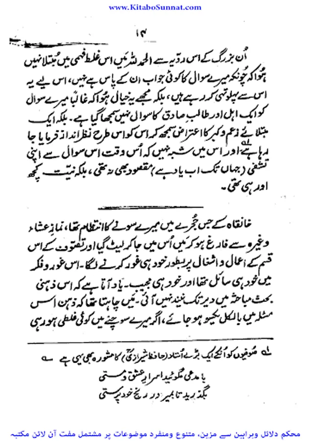 آج امت مسلمہ کی زبوں حالی اس انتہاکو پہنچ چکی ہے کہ جھوٹ سچ سے اور کھوٹا کھرے سے بالکل پیوست نظر آتا ہے۔جس طرح علم ظاہر کے حامل علمائے حق کی صفوں میں علمائے سوءداخل ہو چکے ہیں ، اسی طرح علم باطن کے حامل مشائخ حق پرست کے بھیس میں نفس پرست لوگ شامل ہو چکے ہیں۔ عوام الناس کی روحانی اور باطنی تنزلی کی انتہا یہاں تک ہو چکی کہ ایک طبقے نے بیعت طریقت کو لازم قرار دے کر فرائض کے ترک کرنے اور شریعت اور طریقت کو الگ الگ ثابت کرنے کا بہانہ بنا لیا ۔ ضلو ا فا ضلوا (خود بھی گمراہ ہوئے اور دوسروں کو بھی گمراہ کیا)۔ دوسرے طبقے نے بیعت طریقت کو گمراہی سمجھ کر اس کی مخالف کا بیڑا اٹھا لیا۔ان حالات میں اہل حق کیلئے افراط و تفریط کے شکار ان دونوں طبقوں سے چومکھی لڑائی لڑنے کے سوا چارہ نہیں۔ تاکہ احکام شریعت کو نکھار کر پیش کیا جائے اور حق و باطل کی حد فاصل کو واضح کیا جائے۔ زیر تبصرہ کتاب’’تصوف کیا ہے‘‘جو کہ مولانا محمد منظور نعمانی،مولانا محمد اویس ندوی،اور مولانا سید ابوالحسن علی ندوی کے مقالات سے تحریر کی گی ہے جس میں مذکورہ مصنفین نے افراط و تفریط سے دامن بچائے ہوئے اہل سنت والجماعت کے حقیقی نقطہ نظر کو واضح کیا ہے۔علم تصوف، تصوف کیا ہے، لفظ صوفی کی تحقیق،بیعت طریقت کا شرعی ثبوت، ضرورت مرشد، آداب مرشد، خانقاہوں کا قیام، اعتقادات، اسباق تصوف، معمولات شب و روز، معارف و حقائق، اخلاق حمیدہ ، تصوف کے متعلق کیے جانے والے عمومی سوالات وغیرہ جیسے اہم ترین عنوانات پر تسکین بحث کی ہے۔اللہ رب العزت سے دعا کرتے ہیں کہ اللہ فاضل مصنفین کو اس کار خیر پر اجرے عظیم سے نوازے ۔آمین (شعیب خان).