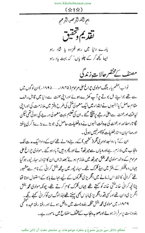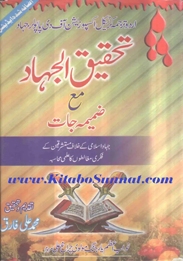اللہ عزوجل نے اپنے بندوں پر ایمان وعقیدہ کے بعد جو عبادتیں فرض فرمائی ہیں ان میں سے کچھ کا تعلق جسم اور مال دونوں سے ہے ‘ کچھ کا صرف جسم سے ہے او رکچھ کا صرف مال سے ۔ جہاد وہ عبادت ہے جس کا تعلق صرف جسم ومال دونوں سے ہے اور مال وجان انسانوں کی وہ محبوب چیز ہے جس کی تحصیل کے سلسلے میں عام طور سے انسان کسی حد پر پہنچ کر قناعت نہیں کرتا بلکہ مزید سے مزید حاصل کرنے کے لیے ہمہ وقت کوشاں رہتا ہے۔ اتنا ہی نہیں بلکہ بہت سے خدا نا ترس لوگ مال کی خاطر جائز وناجائز کی بھی پروا نہیں کرتے اور اپنی جان کی حفاظت میں ہمہ وقت فکر مند رہتا ہے لیکن یہی جان اللہ کی راہ میں پیش کرنا جہاد کہلاتا ہے۔ زیرِ تبصرہ کتاب میں جہاد ہی سے متعلق تفصیلات ذکر کی گئی ہیں۔ اس می مصنف نے ان تمام اعتراضات اور اتہامات کا ذکر کیا ہے جو مخالفین کی طرف سے جہاد اسلامی اور رسالت مآبﷺ کی سیرت طیبہ پر لگائے جاتے ہیں اور ان کے مدلل اور مسکت جوابات بھی نہایت اختصار اور جامعیت کے ساتھ دے دیئے گئے ہیں جن کی تفصیل کتاب اور ضمیمہ جات میں درج کی گئی ہے۔ اس کتاب میں بارہ باب بھی قائم کیے گئے ۔ اس کتاب کے مطالعے سے عوام کم وقت میں زیادہ معلومات حاصل کر سکتے ہیں ۔ یہ کتاب’’ تحقیق الجہاد مع ضمیمہ جات ‘‘ مولوی چراغ علی کی مرتب کردہ ہے۔آپ تصنیف وتالیف کا عمدہ شوق رکھتے ہیں‘ اس کتاب کے علاوہ آپ کی اور کتب بھی ہیں۔ دعا ہے کہ اللہ تعالیٰ مؤلف وجملہ معاونین ومساعدین کو اجر جزیل سے نوازے اور اس کتاب کو ان کی میزان میں حسنات کا ذخیرہ بنا دے اور اس کا نفع عام فرما دے۔(آمین)( ح۔م۔ا ).