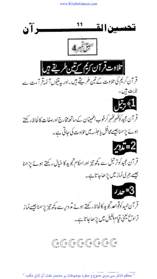 علم تجوید قرآنی علوم کے بنیادی علوم میں سے ایک ہے ۔ اس علم کی تدوین کا آغاز دوسری صدی کے نصف سے ہوا۔ائمۂ حدیث وفقہ کی طرح تجوید وقراءات کے ائمہ کی بھی ایک طویل لسٹ ہے اور تجوید وقراءات کے موضوع پرماہرین تجوید وقراءات کی بے شمار کتب موجود ہیں ۔ عرب قراء کی طرح برصغیر پاک وہند کے علماء کرام اور قراءعظام نے بھی علم تجوید قراءات کی اشاعت وترویج کےلیے گراں قدر خدمات انجام دی ہیں ۔پاکستان میں دیوبندی قراء کرام کےعلاوہ سلفی قراء عظام جناب قاری یحییٰ رسولنگری، قاری محمداریس العاصم ،قای محمد ابراہیم میرمحمدی حفظہم اللہ اور ان کےشاگردوں کی تجوید قراءات کی نشرواشاعت میں خدمات قابل تحسین ہیں ۔مذکورہ قراء کی تجوید وقراءات کی کتب کے علاوہ جامعہ لاہور الاسلامیہ کے کلیۃ القرآن ومجلس التحقیق الاسلامی ،لاہور کے زیر نگرانی شائع ہونے والے علمی مجلہ رشد کےعلم ِتجویدو قراءات کے موضوع پر تین ضخیم جلدوں پر مشتمل قراءات نمبر اپنے موضوع میں انسائیکلوپیڈیا کی حیثیت رکھتے ہیں ۔جس میں مشہور قراء کرام کے تحریر شدہ مضامین ، علمی مقالات اور حجیت قراءات پر پاک وہند کے کئی جیدمفتیان کرام کے فتاوی ٰ جات بھی شامل ہیں اور اس میں قراءات کو عجمی فتنہ قرار دینے والوں کی بھی خوب خبر لیتے ہوئے ان کے اعتراضات کے مسکت جوابات دیئے گئے ہیں۔تلاوت ِقرآن کا بھر پور اجروثواب اس امر پرموقوف ہے کہ تلاوت پورے قواعد وضوابط اور اصول وآداب کے ساتھ کی جائے قرآن کریم کی تلاوت کا صحیح طریقہ جاننا اورسیکھنا علم تجوید کہلاتا ہے ہرمسلمان کے لیے ضروری ہے کہ وہ علم تجوید کے بنیادی قواعد سے آگاہی حاصل کرے ۔ کیونکہ قرآن کریم اللہ تعالیٰ کی وہ عظیم الشان کتاب ہے کہ ہر مسلمان پراس کتاب کو صحیح پڑھنا لازمی اور ضروری ہے جس کاحکم ورتل القرآن ترتیلا سے واضح ہوتا ہے۔ اس قرآنی حکم کی تکمیل اور تجویدکوطالب تجوید کےلیے آسان اورعام فہم بناکر پیش کرناایک استاد کے منصب کا اہم فریضہ ہے ۔ایک اچھا استاد جہاں اداء الحروف کی طرف توجہ دیتا ہے ۔ وہیں وہ اپنے طالب علم کو کتاب کےذریعے بھی مسائل تجوید ازبر کراتا ہے۔ زیرتبصرہ کتاب ’’تحسین القرآن ‘‘ محترم قاری محمد یوسف صدیقی﷾ کی تجوید کےموضوع پر ایک مختصر کتاب ہے انہوں نےاسے قرآن پاک کو اچھی آواز اورفن تجوید کے مطابق صحیح تلفظ کے ساتھ پڑھنے کےلیے بہت آسان کر کے ترتیب دیا ہےاور مسائل تجوید کوآسان انداز میں پیش کرنےکی کوشش کی ہے ۔تجوید کے موضوع پر یہ مختصر کتابچہ حفظ وناظرہ کے طلبا وطالبات کے علاوہ ان خواتین وحضرات کےلیے بھی مفید ہے جوفنی باریکیوں اور تکنیکی اصطلاحات کے بوجھل پن سے گریزاں ہیں ۔ قاری المقری محمد ادریس العاصم ﷾ کی نظرثانی سے اس کتابچہ کی اہمیت وافادیت دو چند ہوگئی ہے ۔(م۔ا).