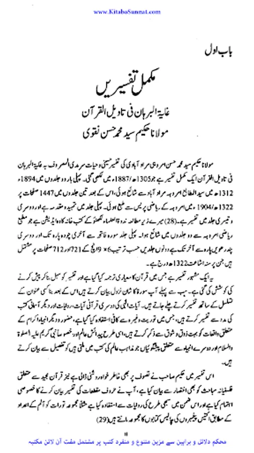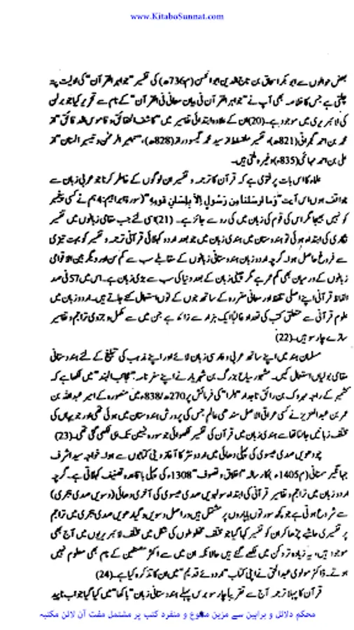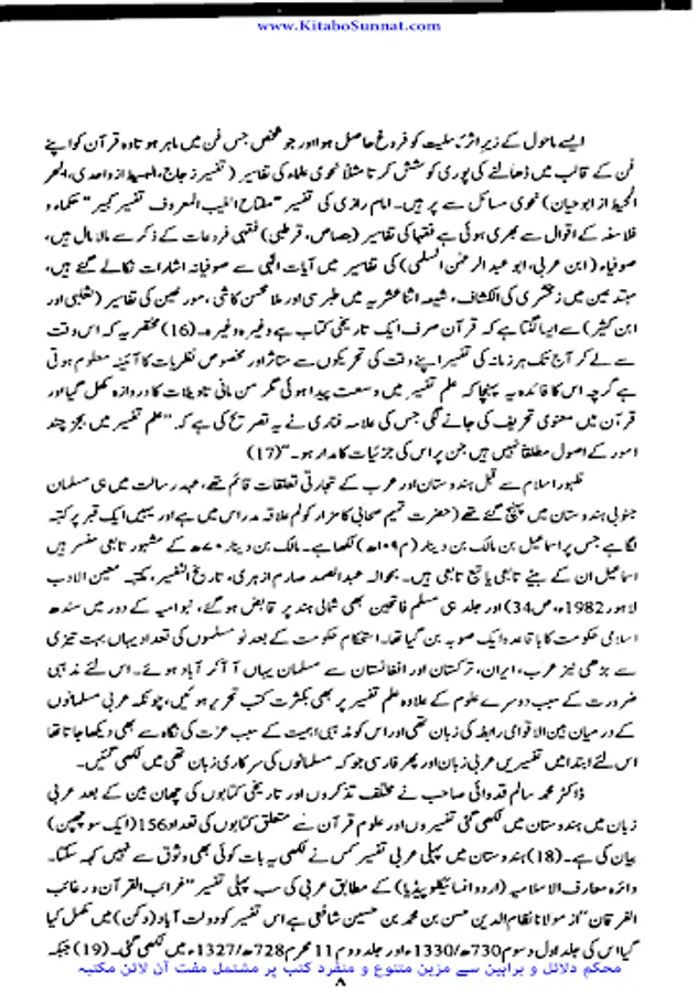 قرآنِ مجید پوری انسانیت کے لیے کتاب ِ ہدایت ہے اور اسے یہ اعزاز حاصل ہے کہ دنیا بھرمیں سب سے زیاد ہ پڑھی جانے والی کتاب ہے۔ اسے پڑھنے پڑھانے والوں کو امامِ کائنات نے اپنی زبانِ صادقہ سے معاشرے کے بہتر ین لوگ قراردیا ہے اور اس کی تلاوت کرنے پر اللہ تعالیٰ نے ایک ایک حرف پر ثواب عنایت کرتے ہیں۔ دور ِ صحابہ سے لے کر عصر حاضر تک بے شمار اہل علم نے اس کی تفہیم و تشریح اور ترجمہ و تفسیرکرنے کی خدمات سر انجام دیں اور ائمہ محدثین نے کتبِ احادیث میں باقاعدہ ابواب التفسیر کے نام سے باب قائم کیے۔ اور مختلف ائمہ نے عربی زبان میں مستقل بیسیوں تفاسیر لکھیں ہیں۔ جن میں سے کئی تفسیروں کے اردو زبان میں تراجم بھی ہوچکے ہیں۔ اور ماضی قریب میں برصغیرِ پاک وہند کے تمام مکتب فکر کےعلماء نے قرآن مجید کی اردو تفاسیر لکھنے میں گراں قدر خدمات انجام دی ہیں۔ ہنوز یہ سلسلہ جاری وساری ہے۔ زیر تبصرہ کتاب ’’ارد وتفاسیر بیسویں صدی میں‘‘ ڈاکٹر سید شاہد علی مرتب شدہ ہے۔ اس کتاب میں انہوں نے بیسویں صدی میں اردو زبان میں لکھی جانی والی مکمل تفسیریں، جزوی تفسیریں، اور حواشی کی صورت میں لکھی جانے والی تفسیروں کا تعارف پیش کیا ہے۔ فاضل مصنف نے اس کتاب کو چار ابواب میں تقسیم کیا ہے باب اول میں 26 مکمل تفسیروں کا تعارف۔ باب دوم میں 37 جزوی تفسیروں کا تعارف۔ باب سوم میں چار تفسیری حواشی کاتعارف پیش کیا ہے اور باب چہارم حوالہ جات پر مشتمل ہے۔ صاحب کتاب نے اگرچہ اس کتاب کو بڑی محنت سے مرتب کیا ہے 20 صدی میں اردو زبان میں لکھی جانے والی مکمل جزوی، تفسیری حواشی کو اس میں جمع کرنے کی کوشش کی ہے لیکن راقم کے خیال میں اس کتاب میں ابھی تشنگی ہے کیونکہ مصنف تمام تفسیروں کا احاطہ نہیں کرسکے۔ مثلاً انہوں نے مکمل تفسیروں میں مولاناادریس کاندہلوی کی تفسیر معارف القرآن اور تفسیری حواشی میں اشرف الحواشی کاذکر نہیں کیا۔ تتبع و تلاش سے بیسویں صدی میں لکھی جانے والی مزید تفسیریں بھی مل سکتی ہیں۔ (م۔ا).