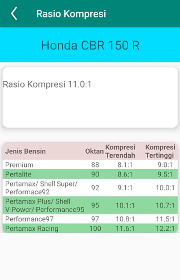 Fuel compression ratio information that matches the type of vehicle you are using. So that the vehicle engine becomes more durable and not hot.
