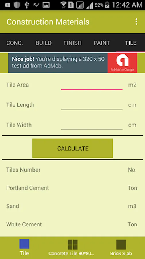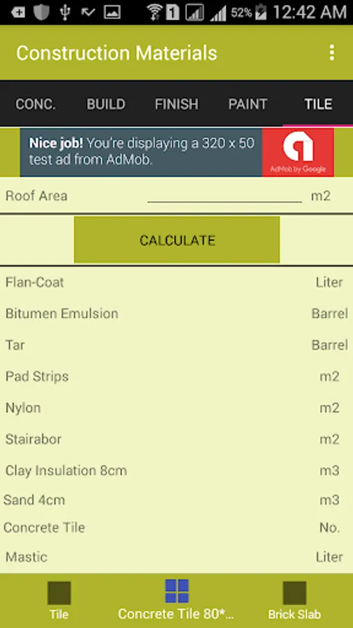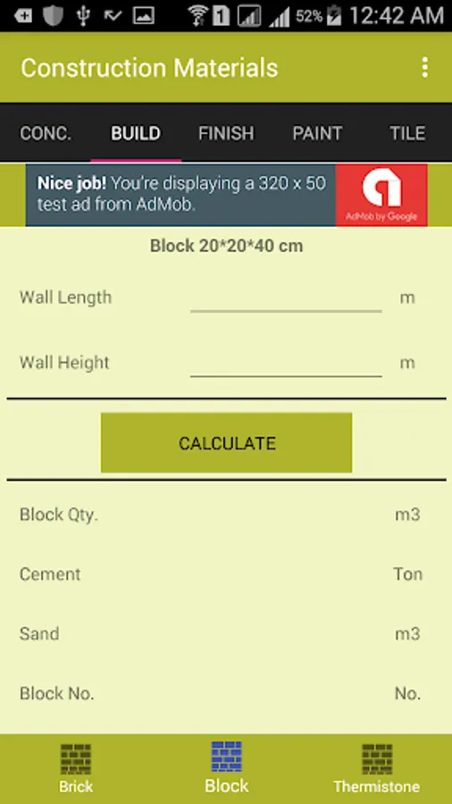 The Application is made for one thing in mind..Make your life simpler specifically when it comes to estimating/calculating construction materials like..Bricks , Blocks, Thermiston ,Plaster, Cement, Sand, Gravel, Water-Base, Oil-Base, Concrete Tile, Tile....etc. The App. is easy to use.I am sure you will enjoy the app.