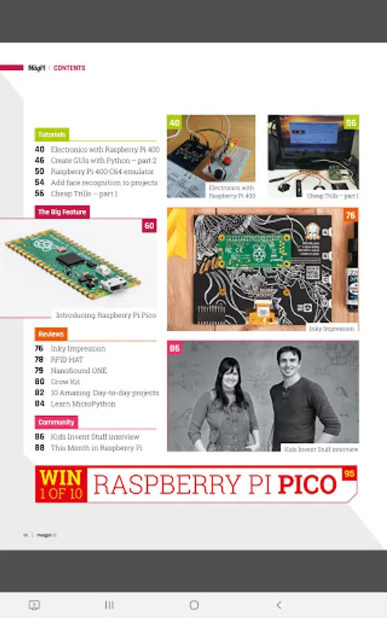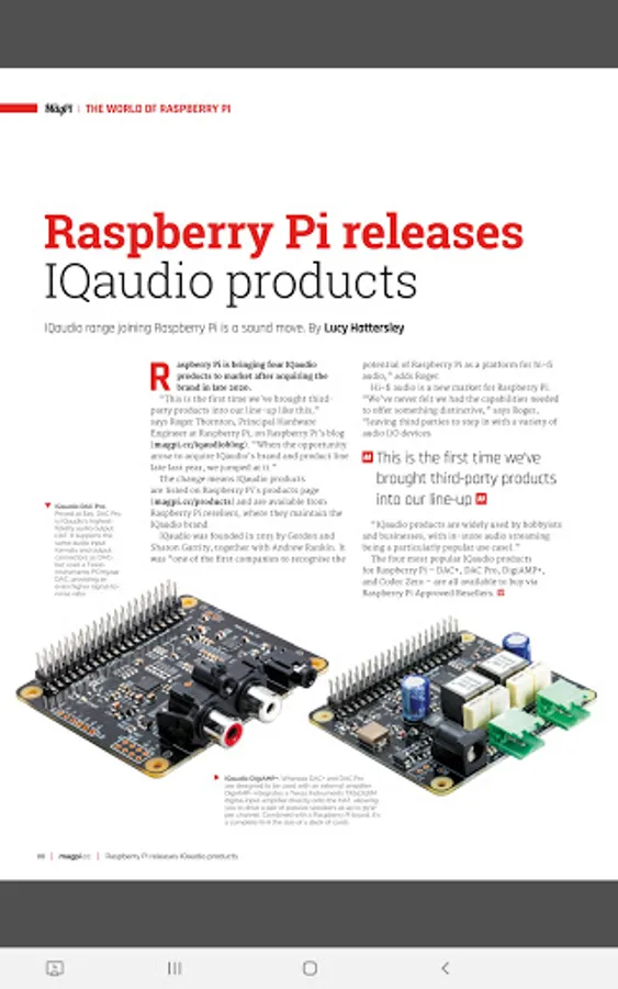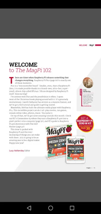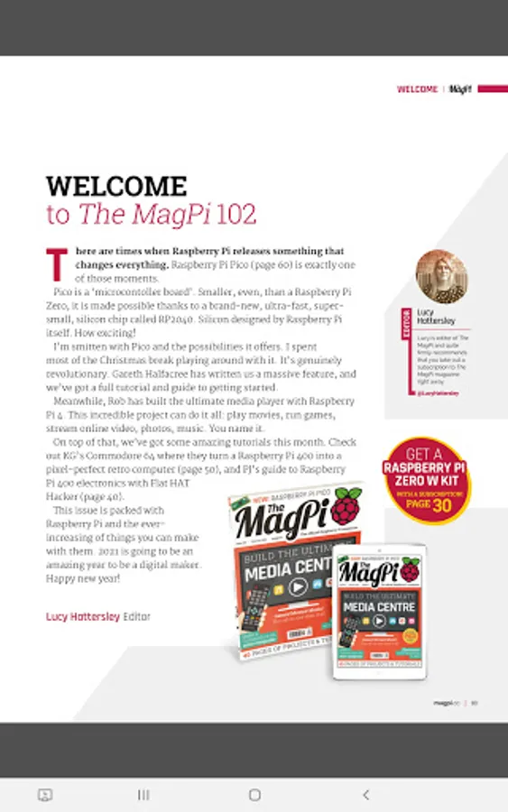The Android edition of The MagPi allows you to quickly and conveniently enjoy the magazine on your favourite Android devices, while make use of features like live URL links, direct cover / contents linking to articles and an improved rendering experience.