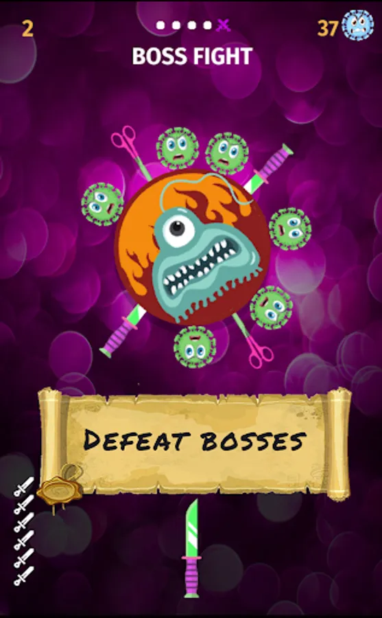 Virus Hit offers hours of fun and original free gameplay. Every five stages, you will fight a boss. Defeat all the bosses, stop the disease contagion, earn unique knives and become the strongest virus antidote!