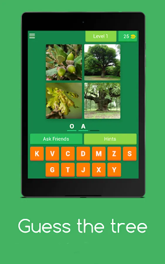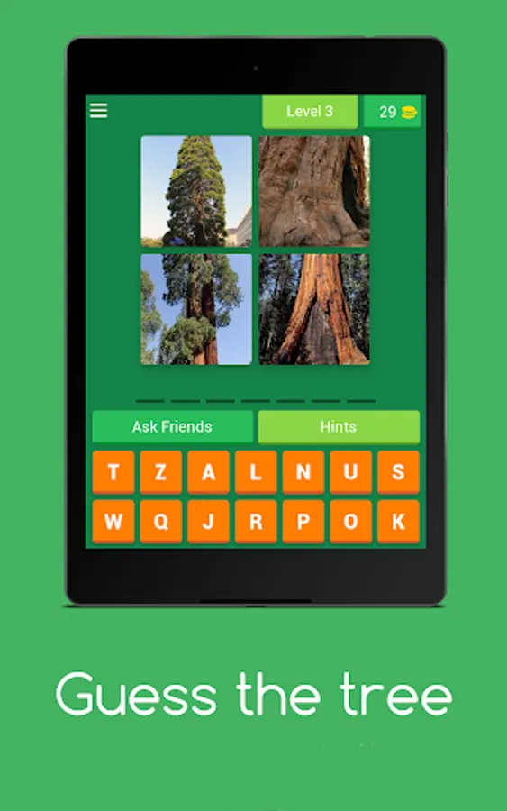 In this new trivia quiz game, you have to guess the name of the tree from a set of 4 pictures. The trees can be from UK, US or many other places. Test your knowledge on plants and tree identification! For each completed level, you earn coins that you can spend to reveal letters.