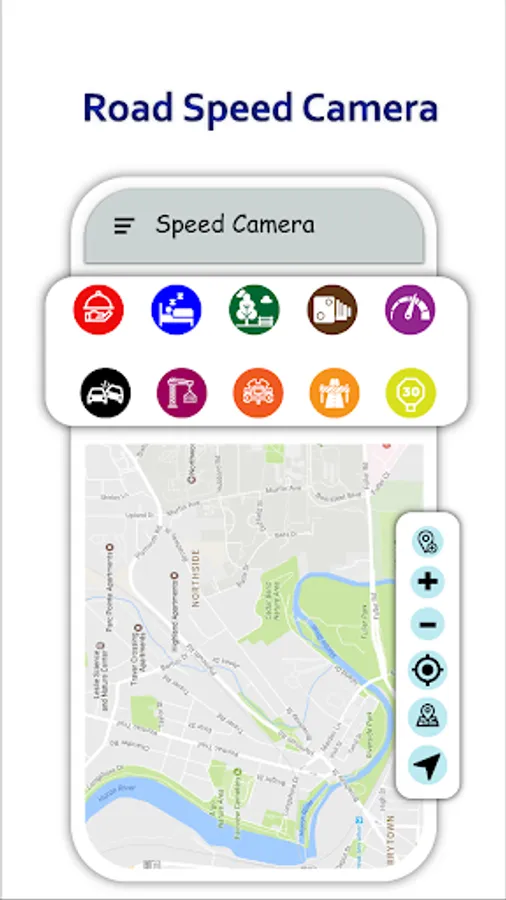 • Speed camera events created by users and you.
