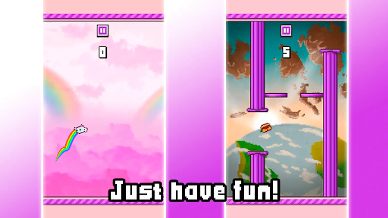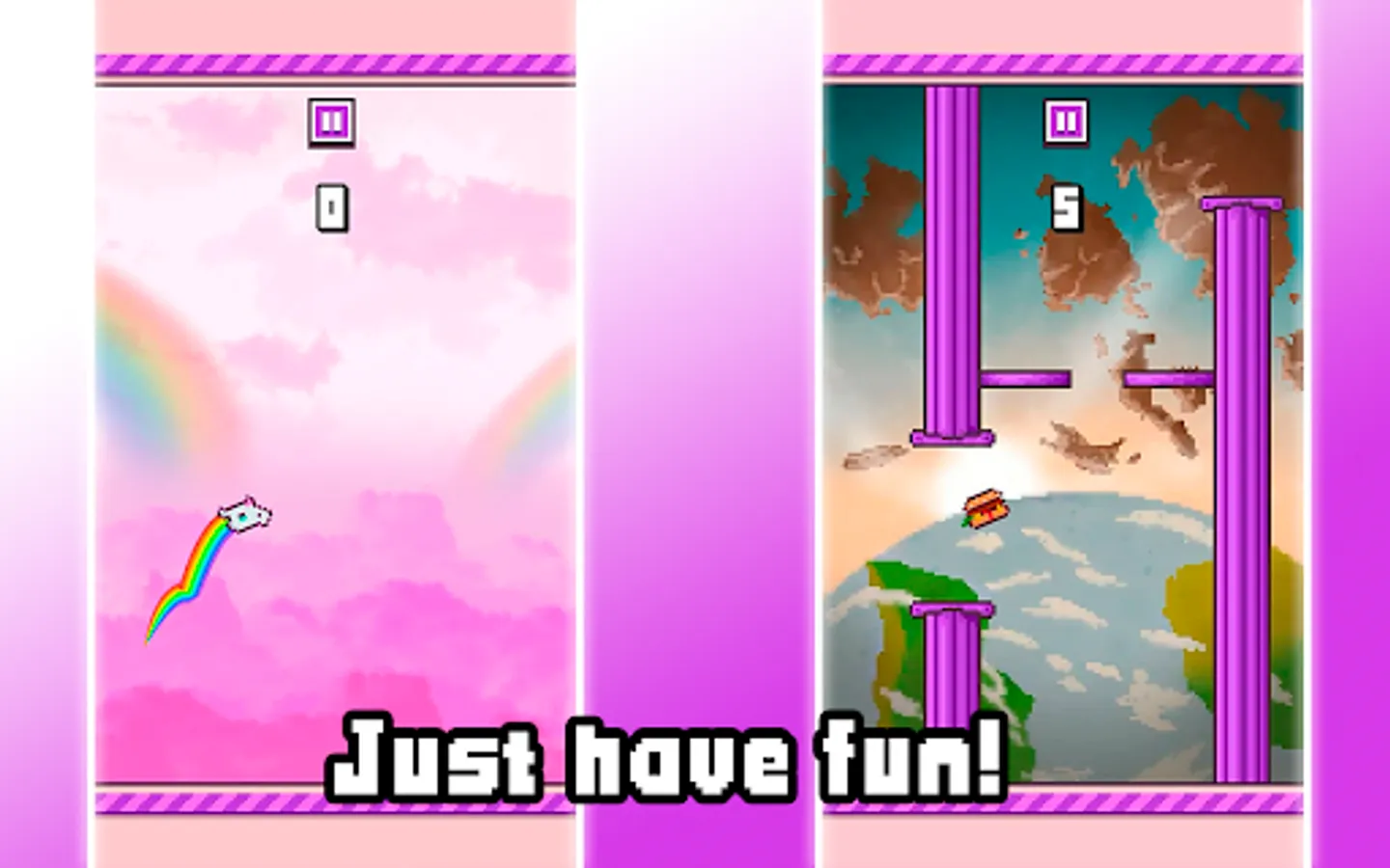 Slappy Fly - Highscore Hard Game is an interesting hard game (with 2 players mode) where you can control cute fly, beating the score and setting a new highscore among columns and other random hard obstacles. Rush through random obstacles and slap the glass. Collect skins and backgrounds from boxes and find your favorite!