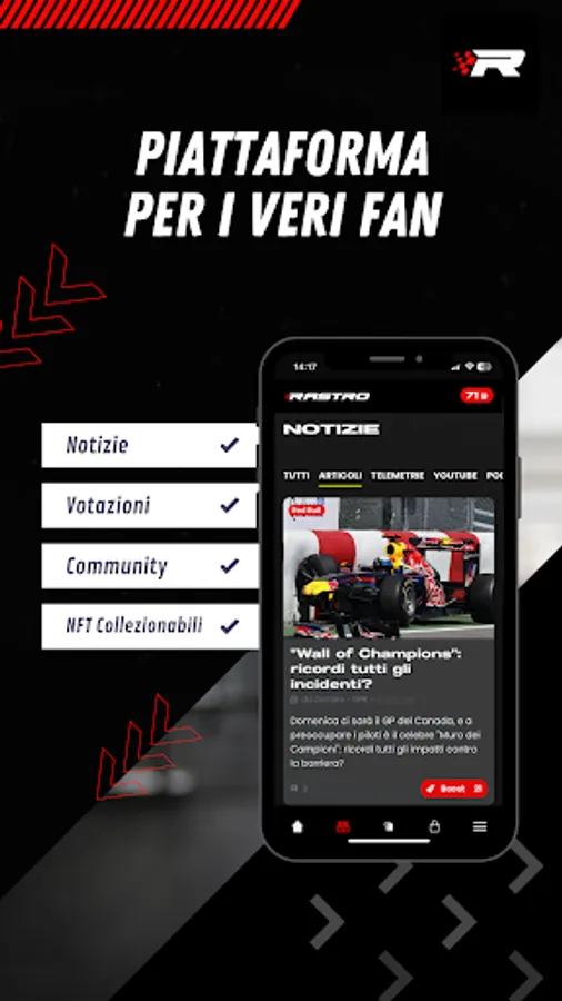 But it doesn't end there! Vote and participate in decisions through interactive voting, expressing your opinion on relevant issues within the world of Formula 1. Collect exclusive NFTs, authentic digital works of art celebrating unforgettable moments in Motorsport history. And follow the new podcast CURVA SONORA, where you will discover the background and the true story of those who work in Motorsport and Formula 1.
