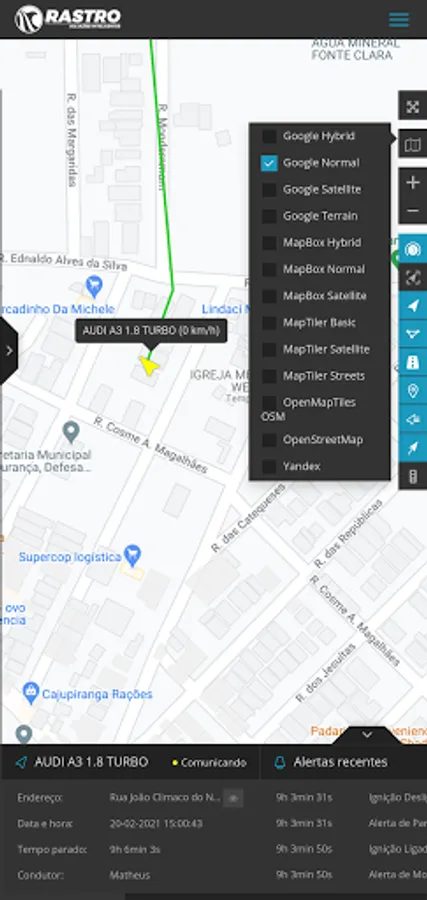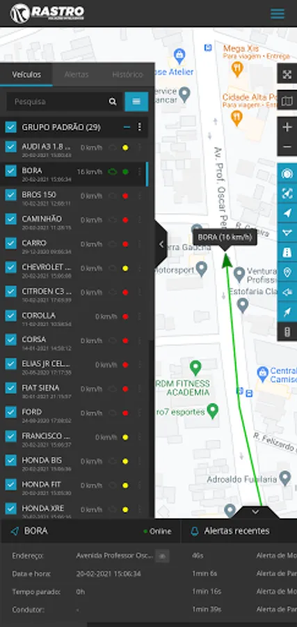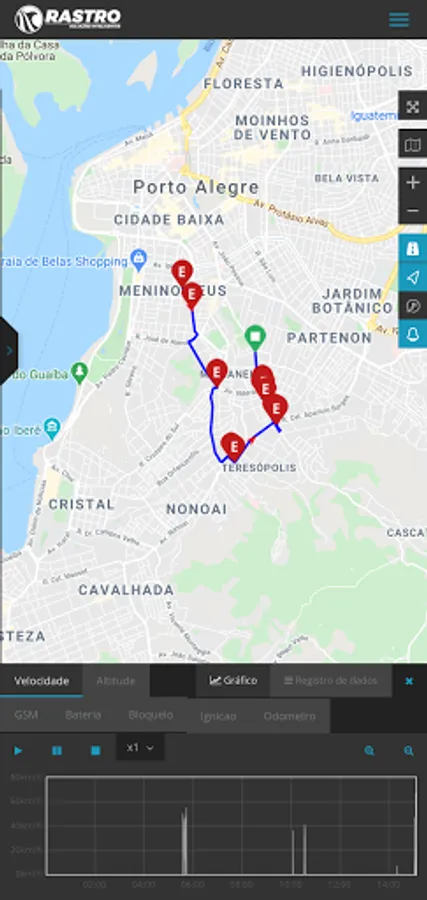 The Rastro Plataforma application is based on the desktop version of the fleet tracking, monitoring and management system used by Rastro Soluções Inteligentes.