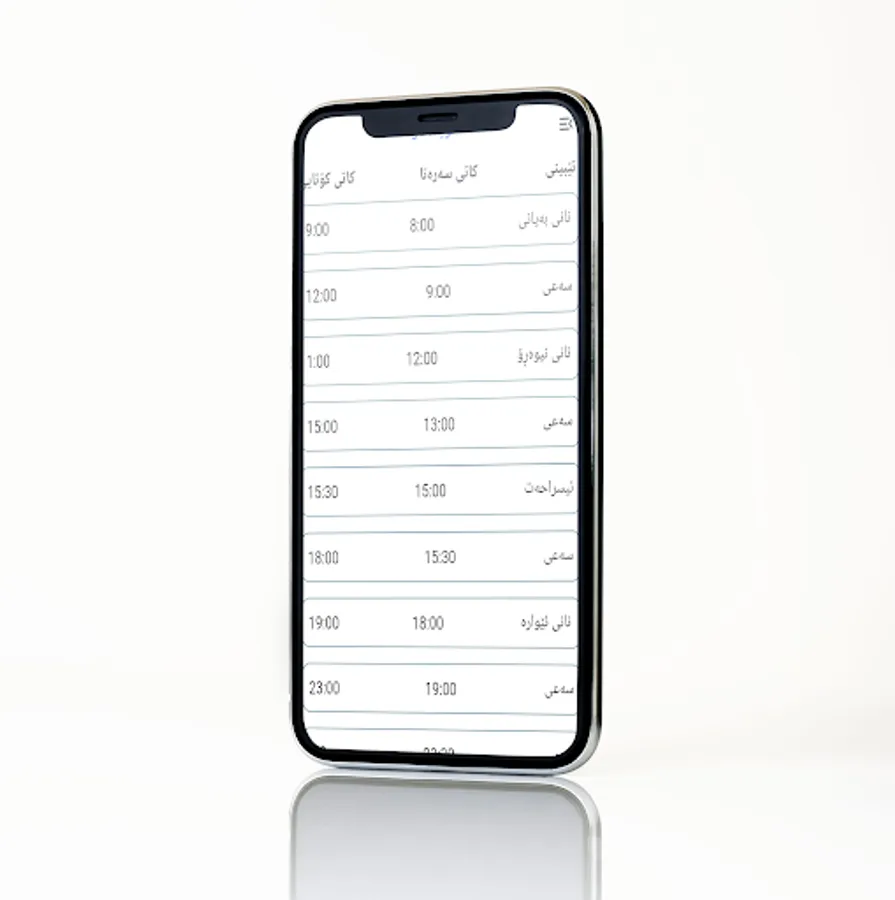 5- خشتەی کاتەکان : لەم بەشەدا فێرخواز ئەتوانێت خشتەیەک بۆ کاتەکانی دابنیت بۆ هەوڵدان و سەعی کردن بەشێوەیەکی دروست.