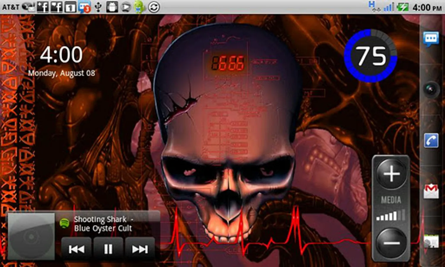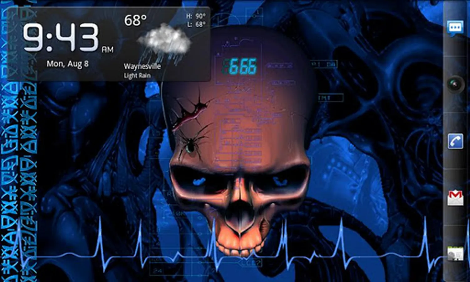 Live Wallpaper with an Alien Biomechanical Skull, with retro glowing and scrolling effects! For fans of horror, sci-fi, alien technology. Also optimized to work well on tablet devices. Implemented with OpenGL for efficiency, and a CPU/Battery saving setting is provided.