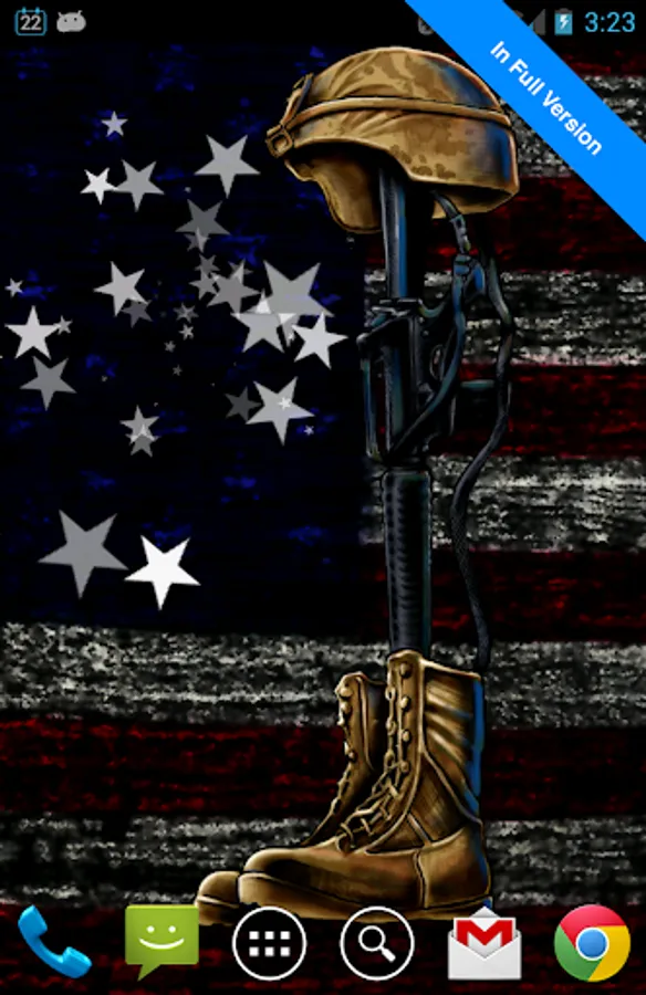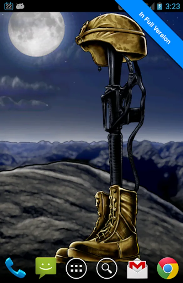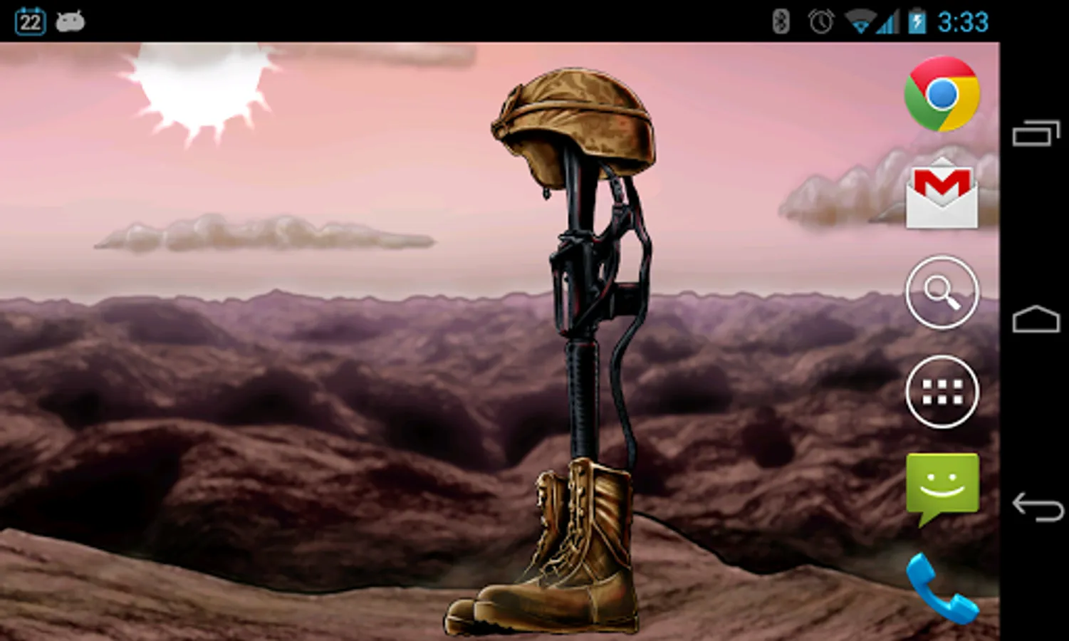 Live Wallpaper featuring a Soldier Memorial theme. This is one of Cat's most requested Tattoos, so we've brought it to life as a live wallpaper! The desert scenes feature moving clouds, mist, and an animated sun