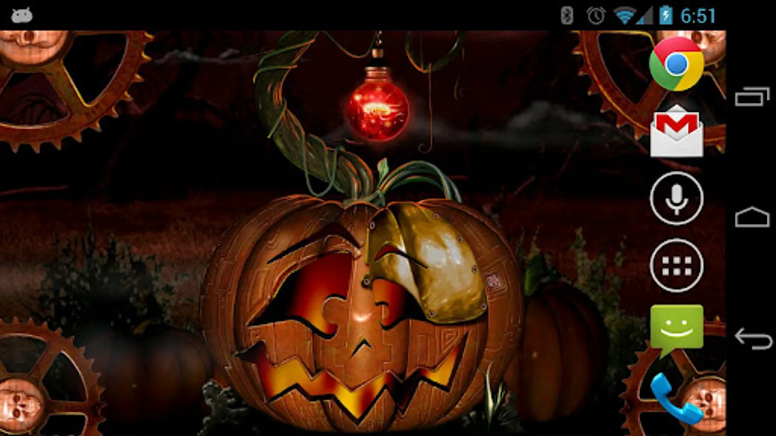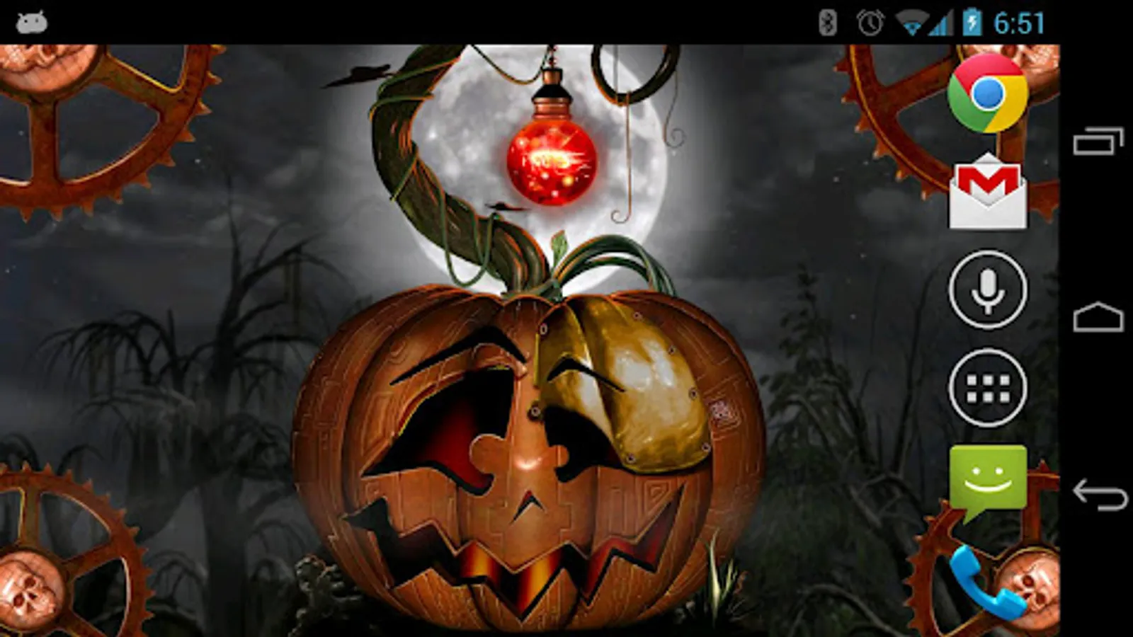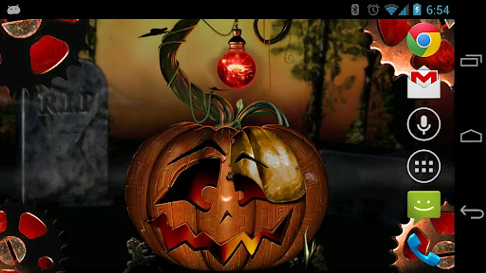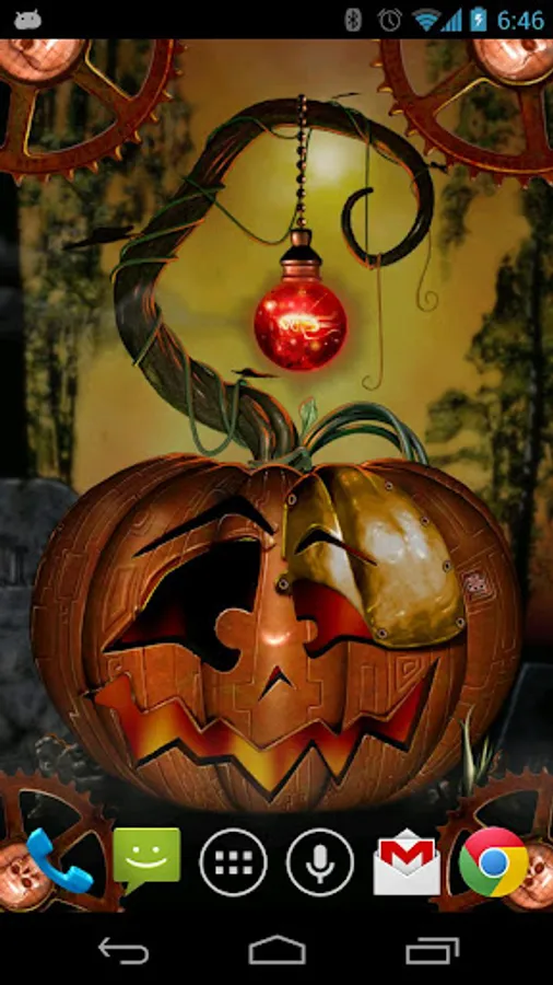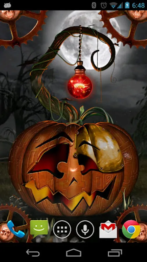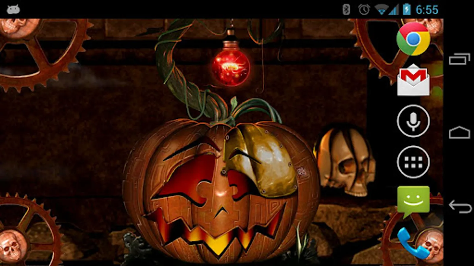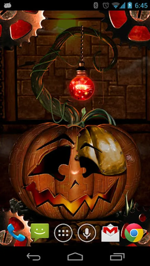 A Halloween "Steampunkin" Live Wallpaper - that is, a "Steampunk Pumpkin" (say that 5x fast!)! Featuring interactive flames, scrolling mist, rotating mechanical gears and one crazy Jack-o-Lantern. The flames grow, and the gears react as you touch the screen, while layers of atmospheric mist float by. For fans of the halloween spirit, steampunk, the victorian era, clockwork, and our other steampunk, biomechanical, technology and horror themed wallpapers.