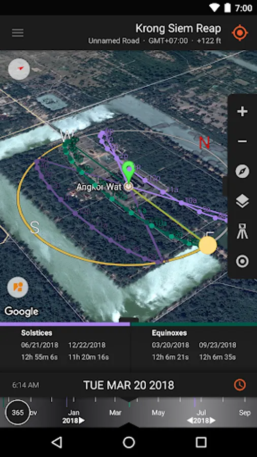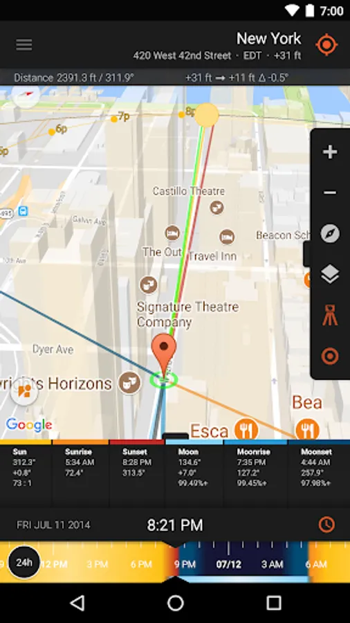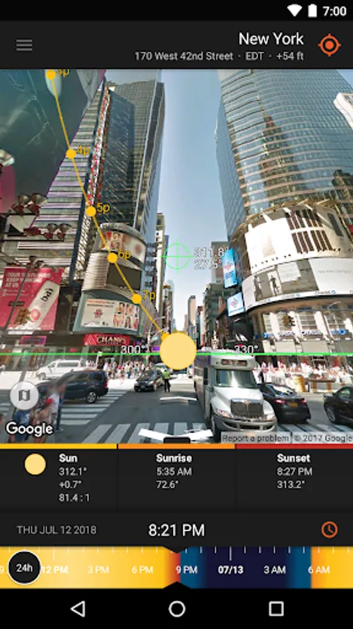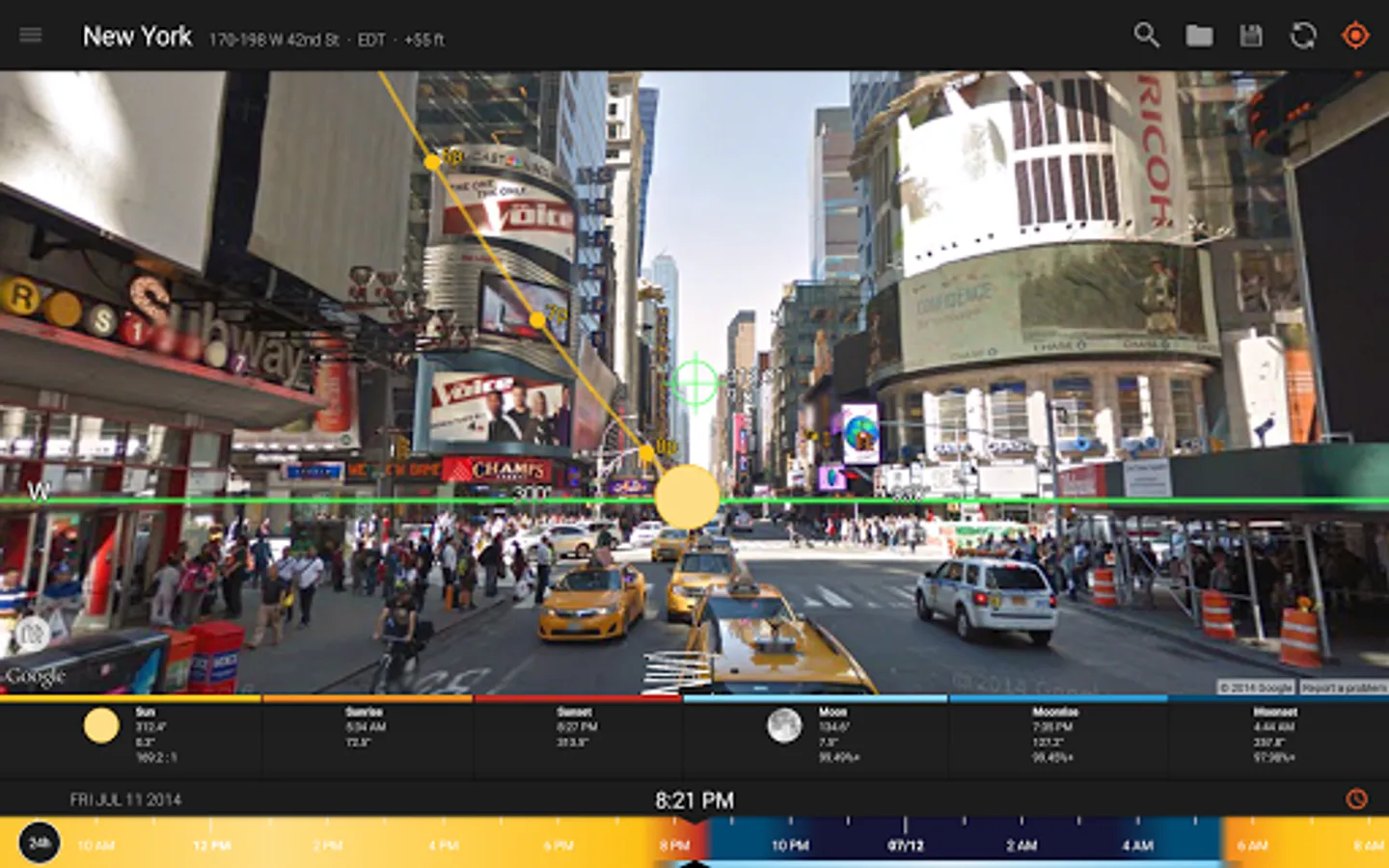 The Live Camera View, Interactive Map (with Street View), 3D Compass, and detailed Ephemeris provide a wealth of information about the largest natural light source in the galaxy, as well as the moon, and milky way: