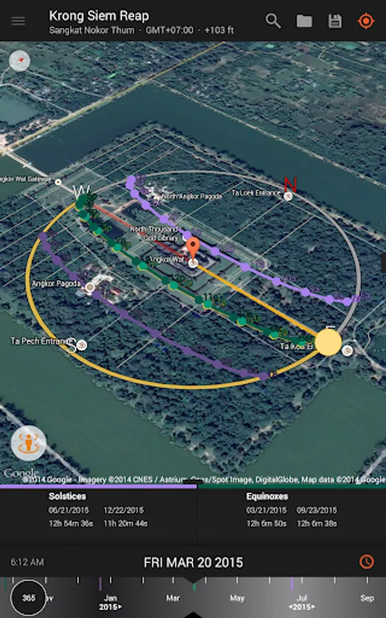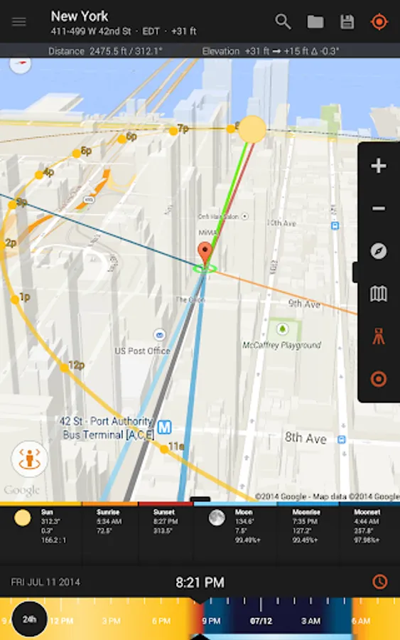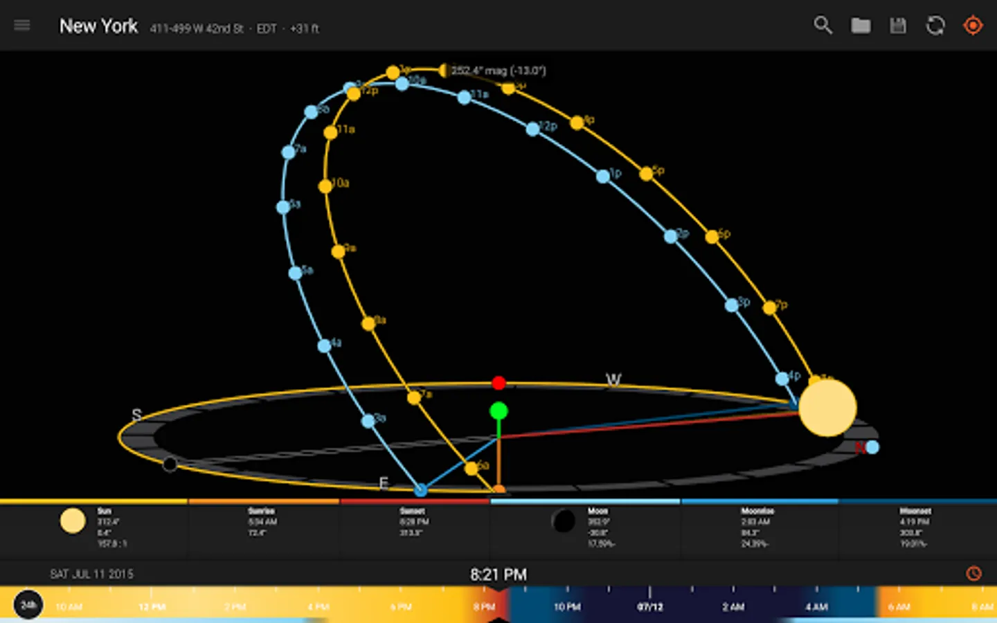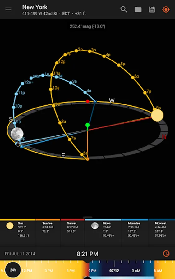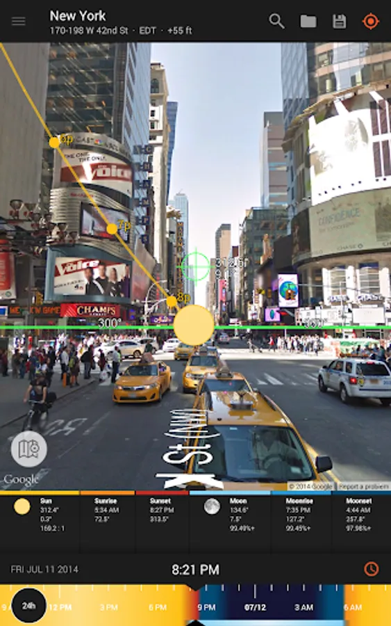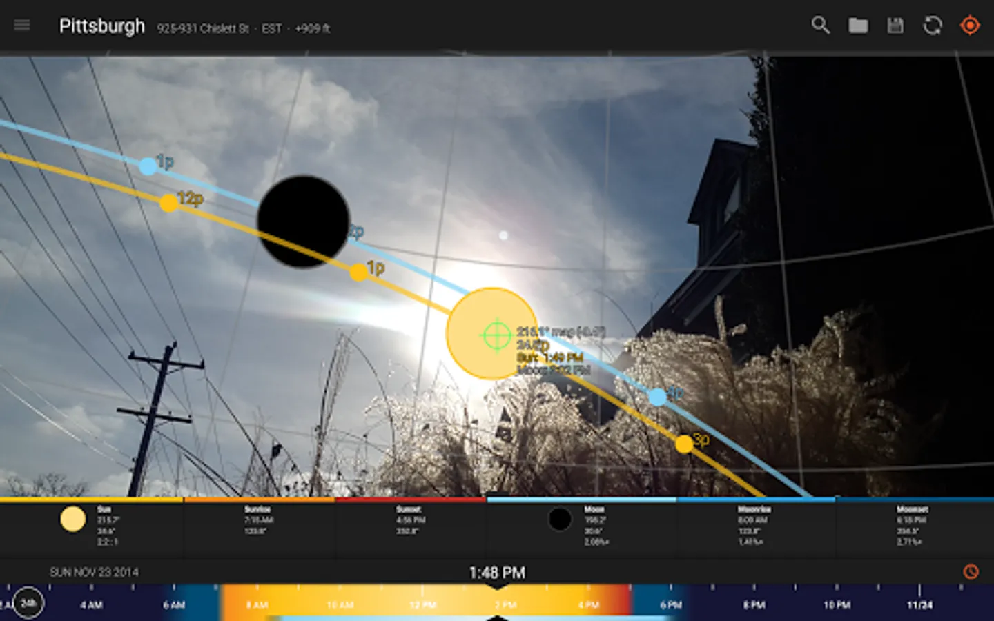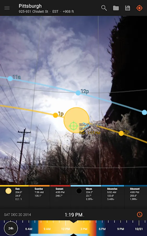 - View augmented reality projections of the sun and moon paths, pinpoint the time the sun or moon will be at a particular location in the sky