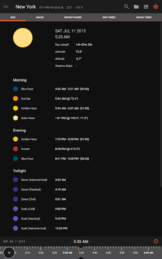 - Predict and plan for the golden hour, blue hour and every sunrise, sunset, moonrise and moonset