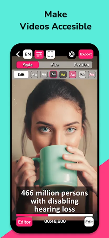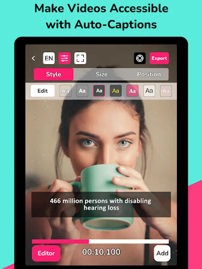 We’ve realized that making all videos readable (adding subtitles to videos) would be great for not only deaf community but also everyone who uses social media. We have discovered the need for an app that makes auto subtitles easily and quickly and supports many languages. With all these thoughts and dreams, we have developed this app. We hope that you would enjoy adding subtitles, customizing subtitles, and extracting your brand new video. Wait for the interaction.