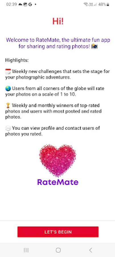 Are you ready to showcase your photography skills and discover amazing images from around the world? RateMate is here to bring the thrill of competition, creativity, and community right to your fingertips. Whether you're an aspiring photographer or simply enjoy appreciating captivating visuals, this is the place for you!