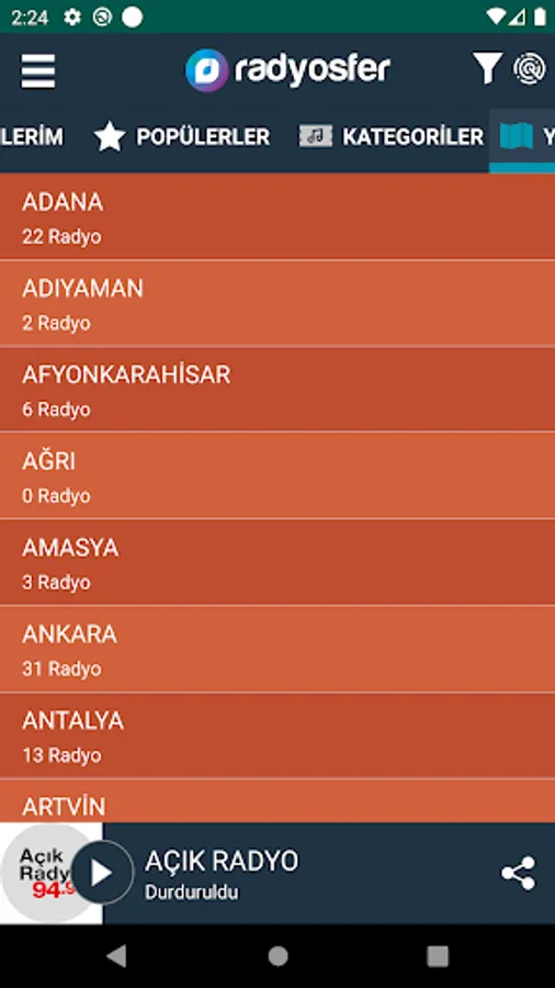 Radyosf with Radio app you can listen to national and local radio stations in Turkey.