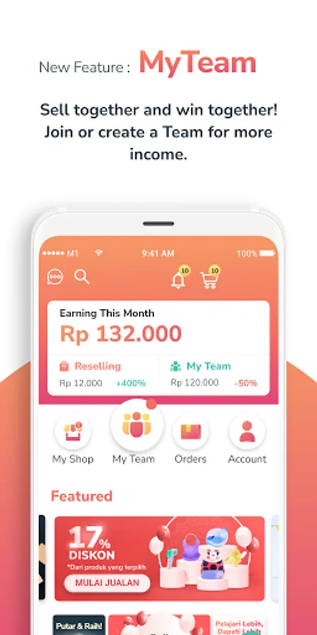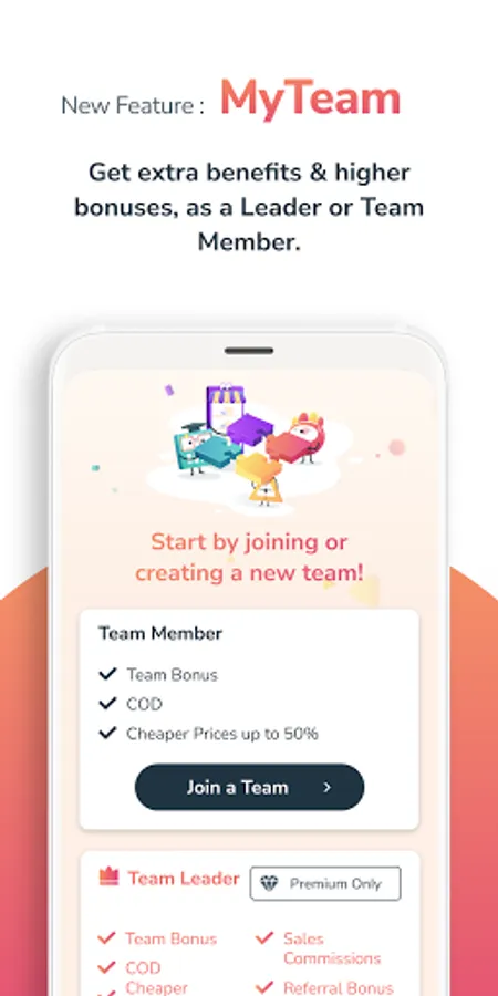 MyTeam feature allows reseller to work together by Creating or Joining a group for higher earning, bonus, & benefits! Sell together, Earn together, Win together!