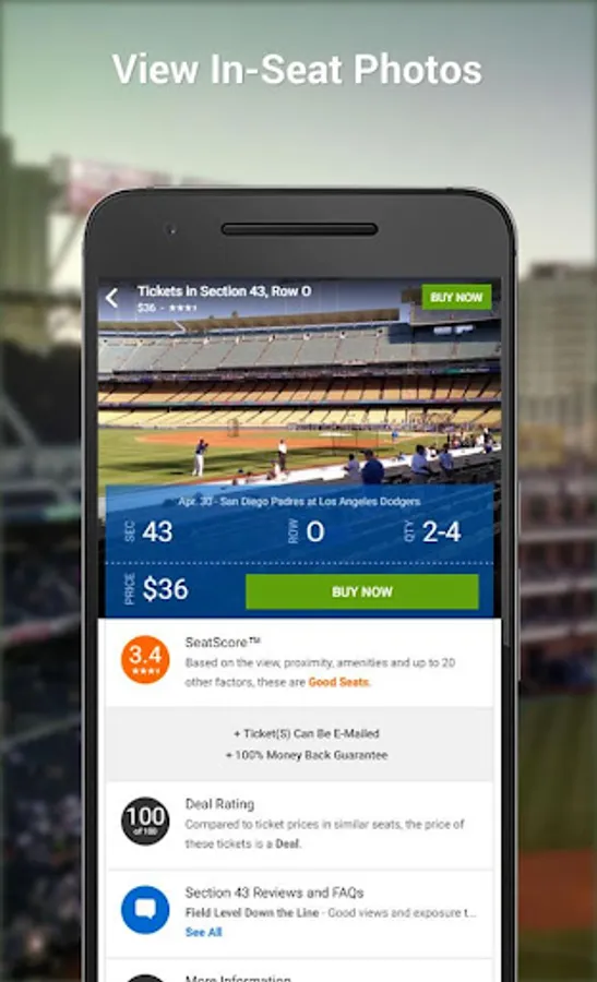 • Select a ticket to check out the view from the seats, seating details, and fan reviews
