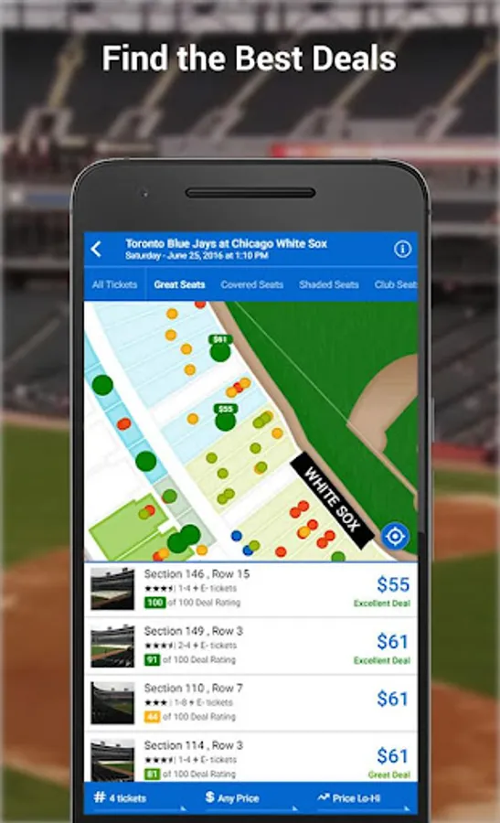 • Color-coded ticket listings make spotting top deals easier than ever
