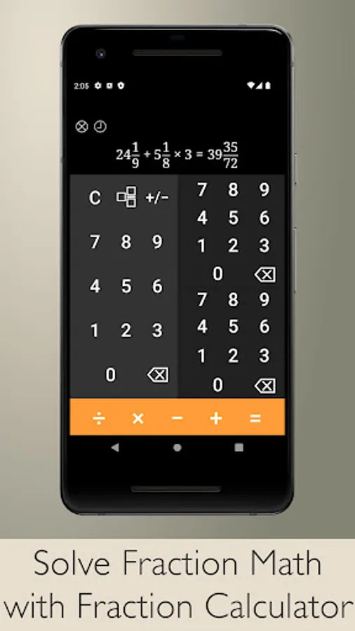 • Built-in fraction calculator to solve fraction math quickly and easily