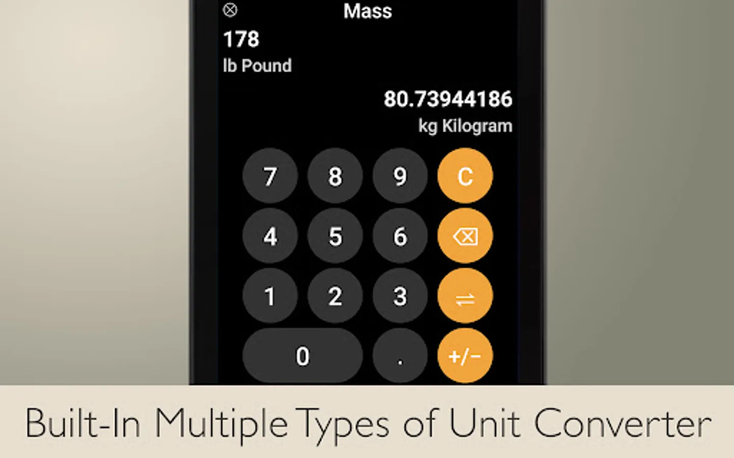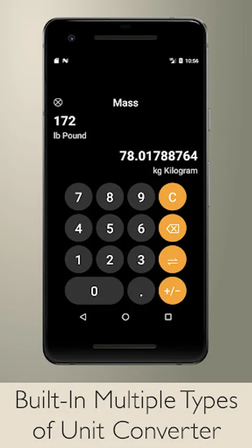 Includes variety of units conversion categories with Unit Converter.