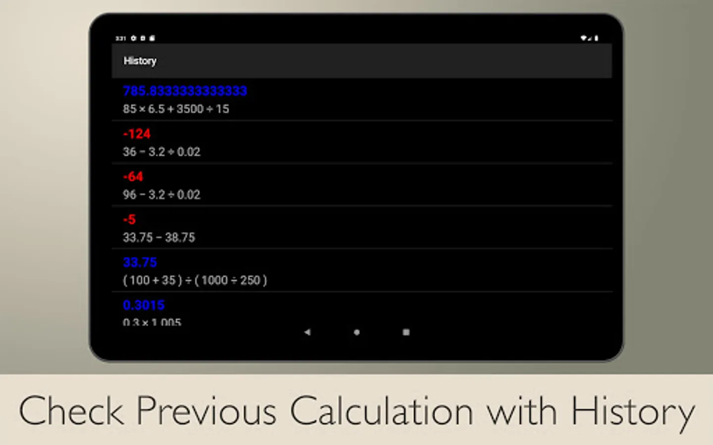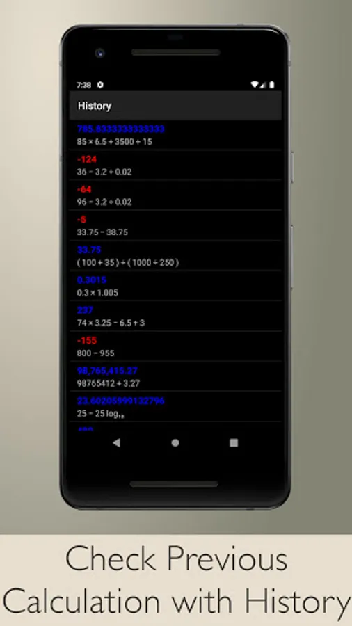 • Check previous calculation with history