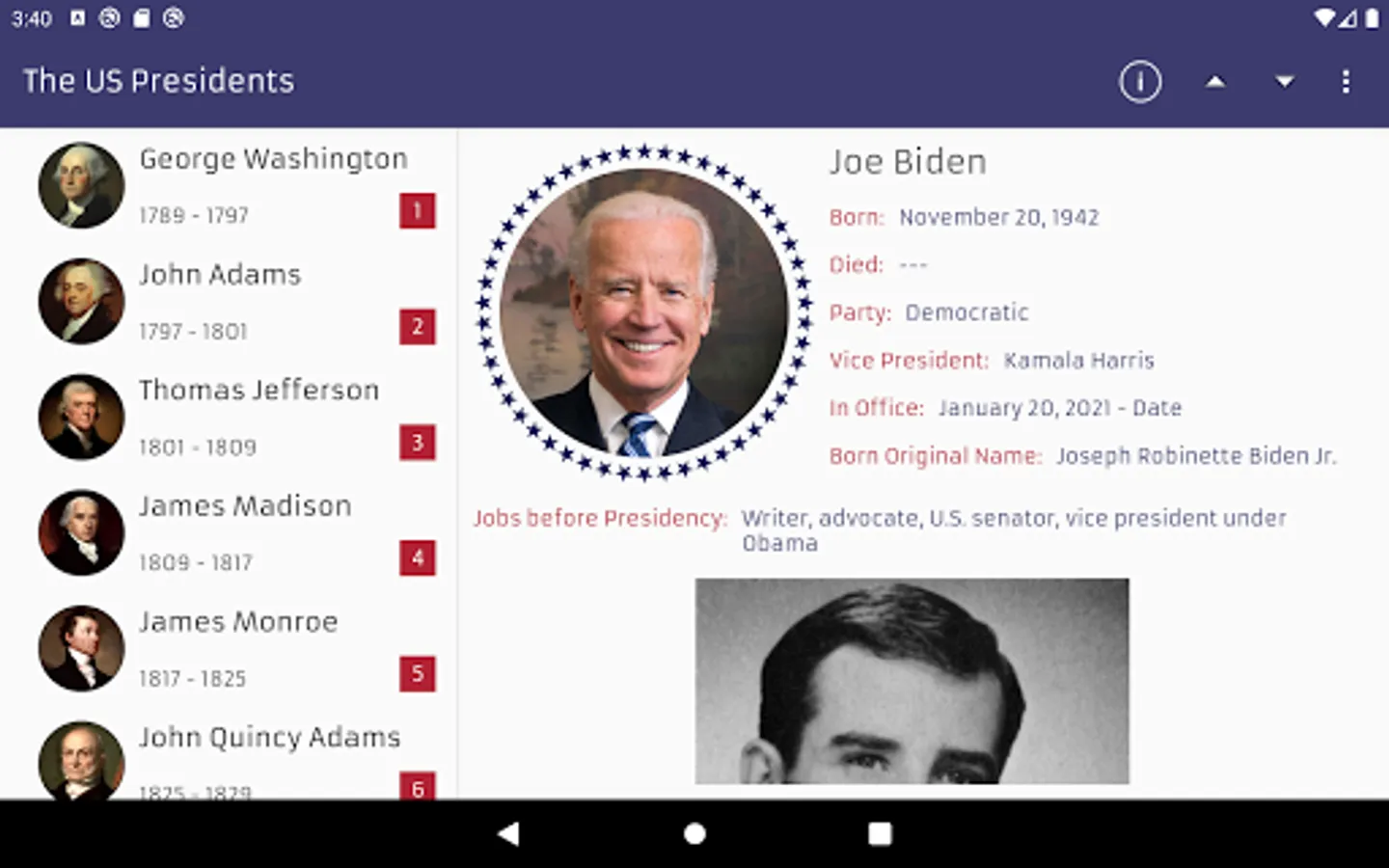 • Also understand president born date, died date, born name, in office year, vice president name, jobs before and after presidency