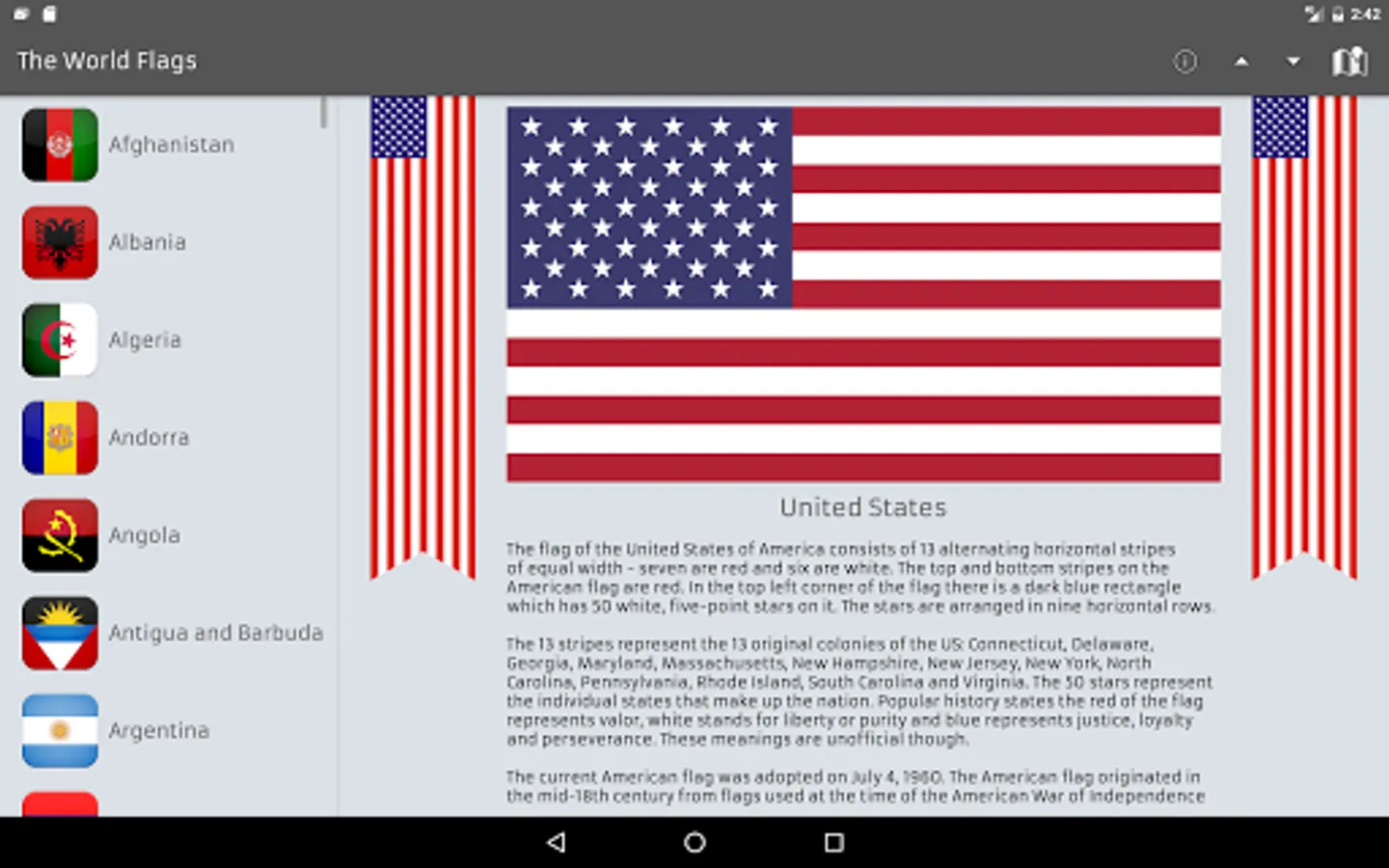 This app will tell you more than just the definition of the flag of your country and more information about your country.