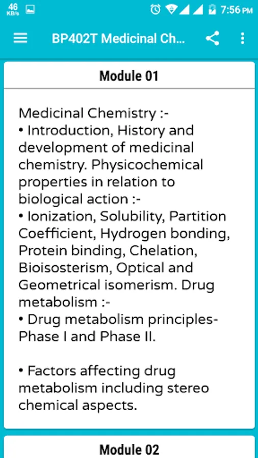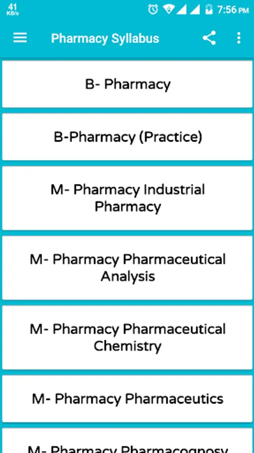 This app contains Complete syllabus of Pharmacy including B.Pharmacy and M.pharmacy. This app has simple and beautiful User Interface and very easy to use.