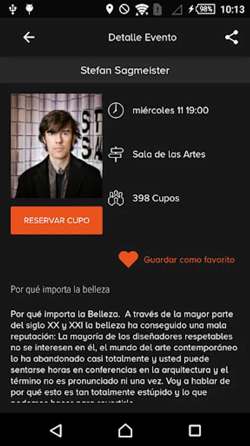 This mobile application presents the exhibition catalog, exhibitors and their works and activities, workshops and events of the Biennial 6a Design to be held from 11 to 22 January 2017 at the Mapocho Station in Santiago, Chile
