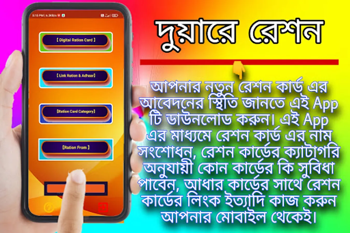 আপনার নতুন রেশন কার্ড এর আবেদনের স্থিতি জানতে এই 🅰🅿🅿 টি ডাউনলোড করুন। এই 🅰🅿🅿 এর মাধ্যমে রেশন কার্ড এর নাম সংশোধন, রেশন কার্ডের ক্যাটাগরি অনুযায়ী কোন কার্ডের কি সুবিধা পাবেন, আধার কার্ডের সাথে রেশন কার্ডের লিংক ইত্যাদি কাজ করুন আপনার মোবাইল থেকেই।