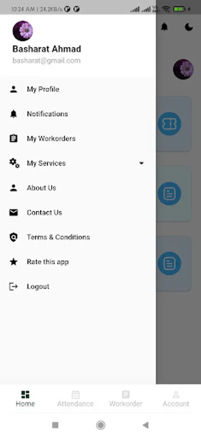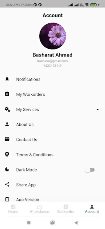 App to manage enquiries, view attendance, service requests, work order details, product details etc