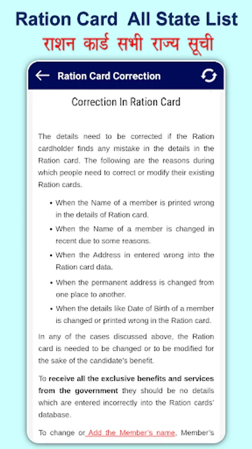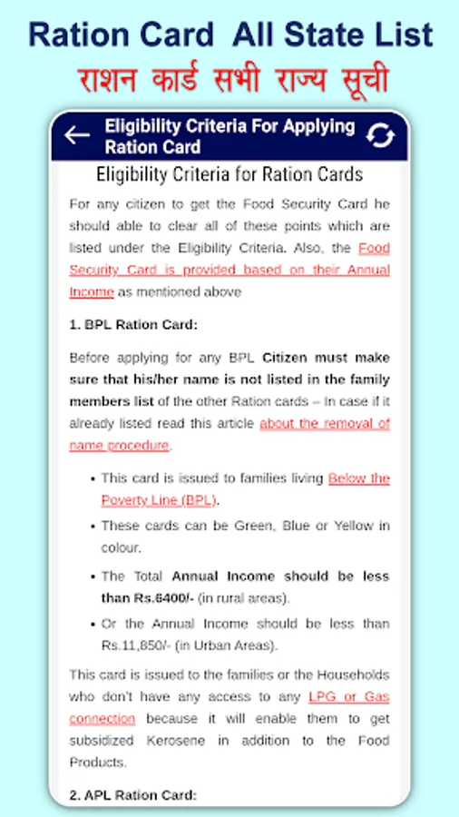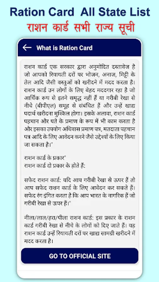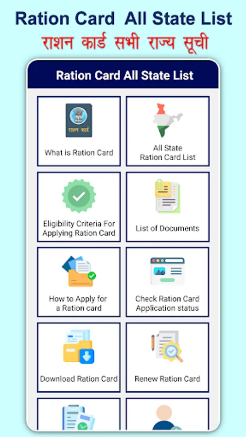 In Ration Card List app, you can check all state of Ration Card List, ration card status, ration card status check, ration card list, ration card online check, digital ration card, ration card search, ration card with this app. In this app, you know about which documents are require for getting new Ration Card.