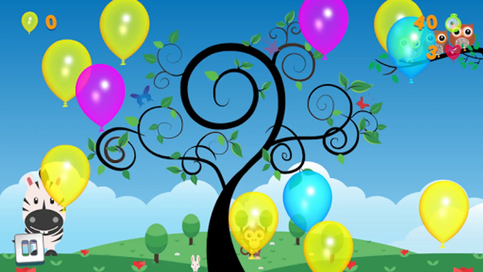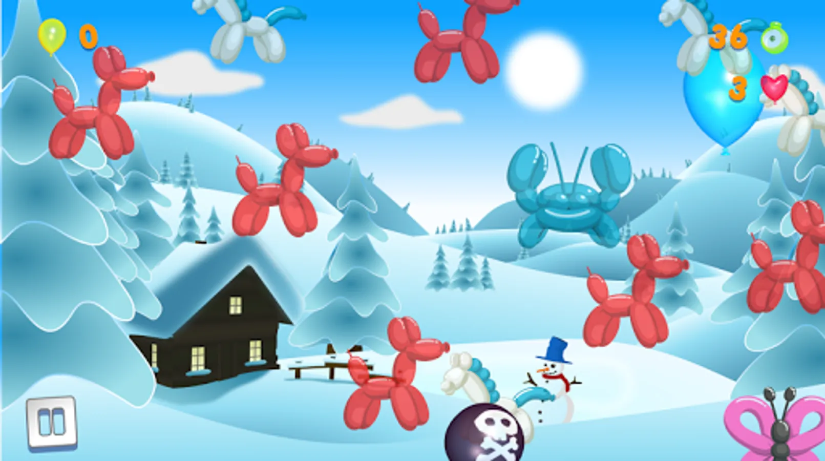 There are 10 different levels of balloon popping fun, suitable for all ages. Pop the balloons as fast as you can to move up to the next level. Avoid popping the balloons with a skull, or you will lose a life. Pop a timer-shape balloons will add more time. Pop the heart-shape balloons will give you an extra life. Pop the various balloon animals just for fun!