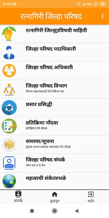 In Today's digital era, we Zilla Parishad Ratnagiri, have also decided to be a part of "Digital India Programme" and have developed our unique and user friendly Android App, "Zilla Parishad Ratnagiri" All Information related to our Ratnagiri Zilla Parishad in now easily and freely available on our app. complaints or opinion if any can also be made through this app. your valuable suggestions in developing this app are always welcome.
