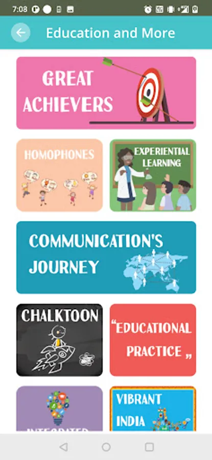 Broaden your knowledge with Ratna Sagar's 'Apptive IQ' app's 'Education & More' section. Discover a wealth of subjects including Great Achievers, Homophones, The Journey of Written Communication, Vibrant India, and more to learn and grow.